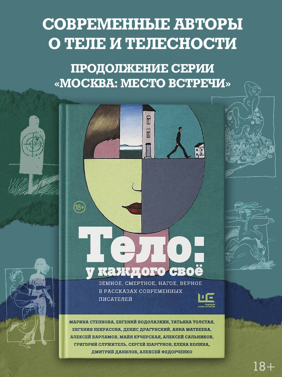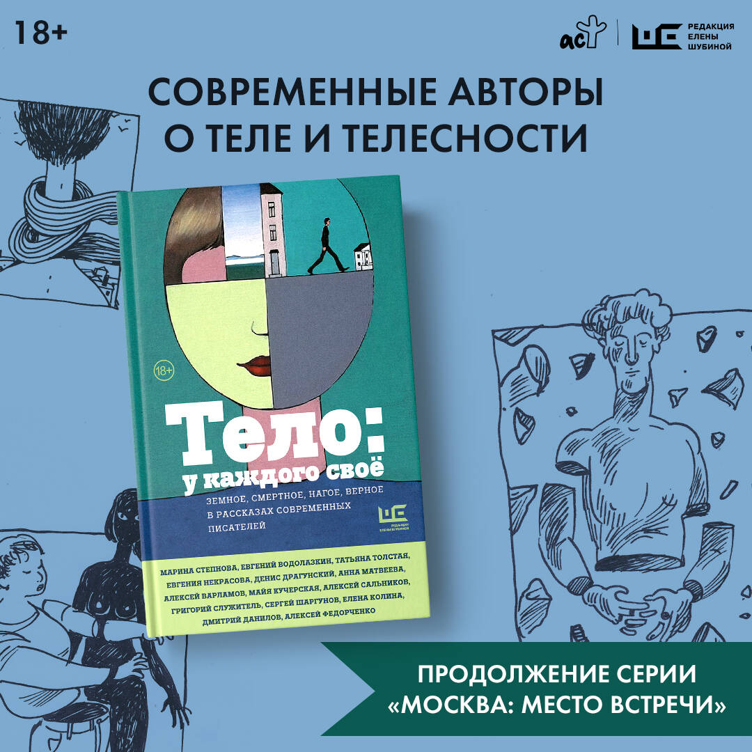 Новый сборник Редакции Елены Шубиной в серии бестселлеров «Москва: место встречи» 39 текстов о теле и телесности, написанных известными прозаиками и поэтами, драматургами, сценаристами и критиками. Актуальные тексты о нас: панорама современной жизни в разных произведениях. Иллюстрированное издание. Каждый текст сопровождается рисунком художницы Евгении Двоскиной.| Издательство | Издательство "АСТ" |