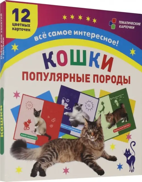 Комплект тематических карточек "Самые популярные породы кошек", познакомит ребенка с разнообразием пород, которые считаются самыми популярными в России. Яркое, красочное изображение и доступная для детского понимания информация на оборотной стороне карточки познакомит ребенка с историей возникновения породы, ее отличительными особенностями и главными свойствами характера каждой породы. Просмотр карточек позволит маленькому любителю кошек быстро запомнить породы кошек, расширит его кругозор и разовьет активный словарь. В комплект тематических карточек вошли такие породы, как: Невская маскарадная кошка; Сибирская кошка; Русская голубая кошка; Норвежская лесная кошка; Шотландская вислоухая кошка; Сиамская кошка; Британская короткошерстная кошка; Сфинкс; Мейн-кун; Персидская кошка; Бенгальская кошка; Курильский бобтейл. Комплект предназначен педагогам и родителям для занятий с детьми.