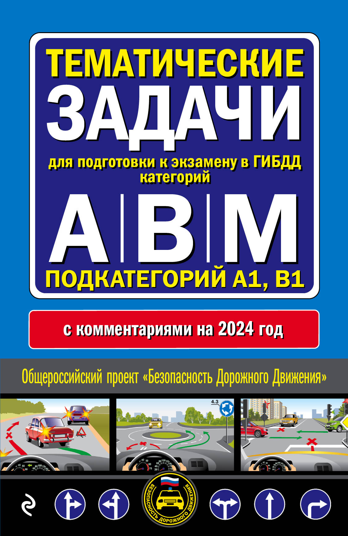 Аннотация: Тематические задачи для подготовки к экзамену в ГИБДД категорий А, В, М, подкатегорий А1, В1 с комментария на 2024 год