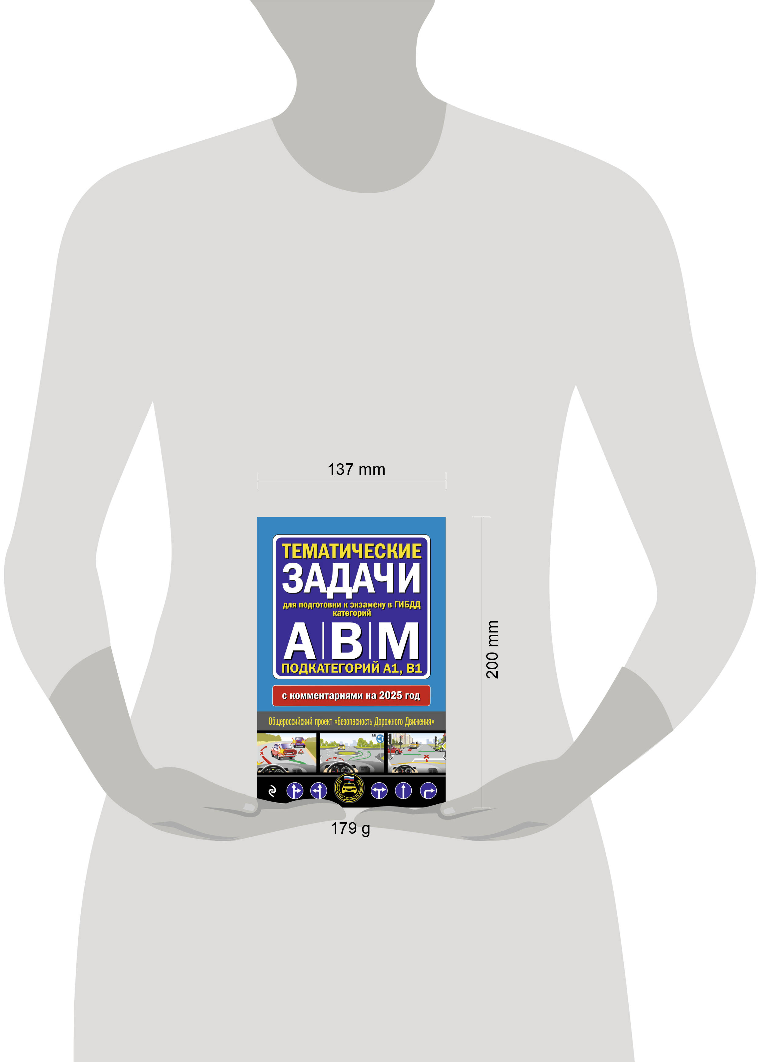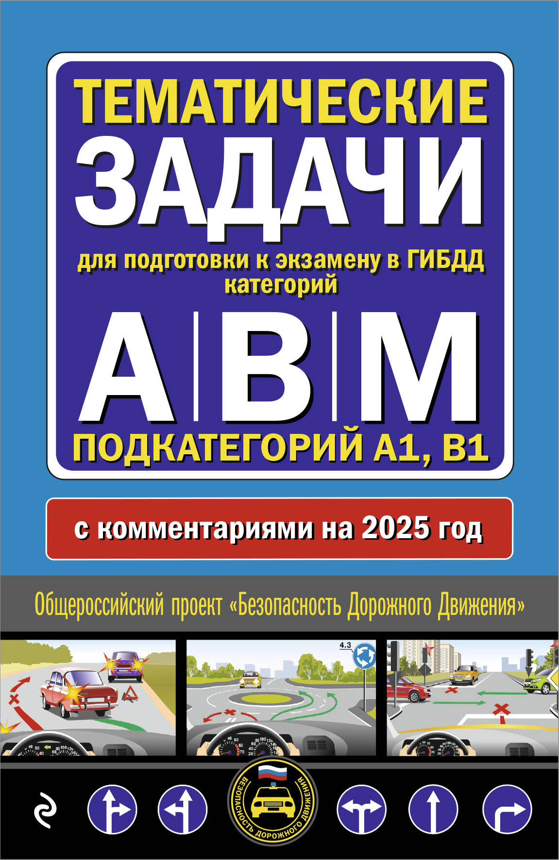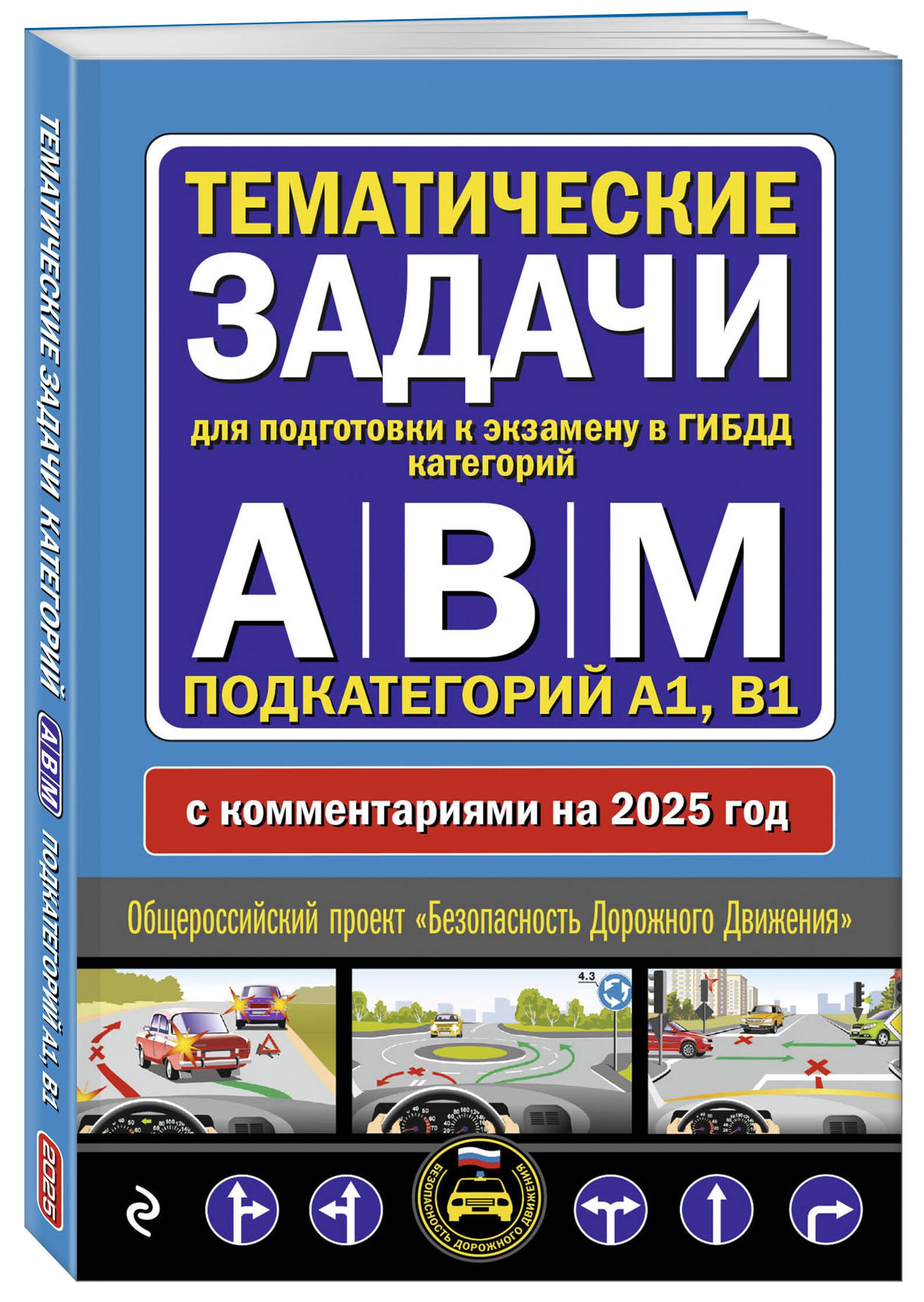 Аннотация: Тематические задачи для подготовки к экзамену в ГИБДД категорий А, В, М, подкатегорий А1, В1 с комментария на 2025 год