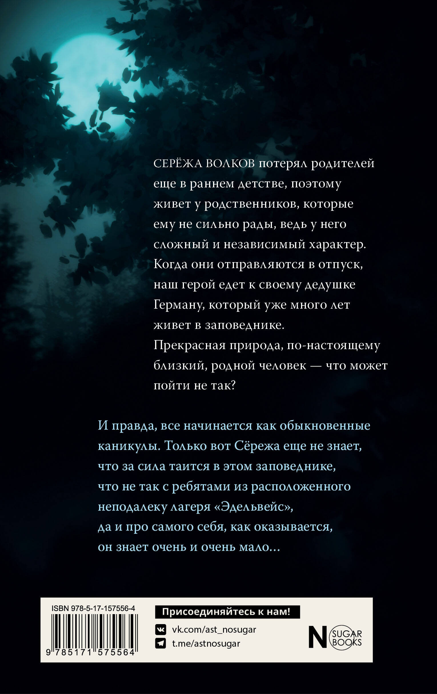 Серёжа Волков потерял родителей ещё в раннем детстве, поэтому живет у родственников, которые ему не сильно рады, ведь у него сложный и независимый характер. Когда они отправляются в отпуск, наш герой едет к своему дедушке Герману, который уже много лет живёт в заповеднике. Прекрасная природа, по-настоящему близкий родной человек, что может пойти не так? И правда, всё начинается как обыкновенные каникулы. Только вот Серёжа ещё не знает, что за сила таится в этом заповеднике, что не так с ребятами из расположенного неподалёку лагеря "Эдельвейс", да и про самого себя, как оказывается, он знает очень и очень мало…| Издательство | ИЗДАТЕЛЬСТВО "АСТ" |