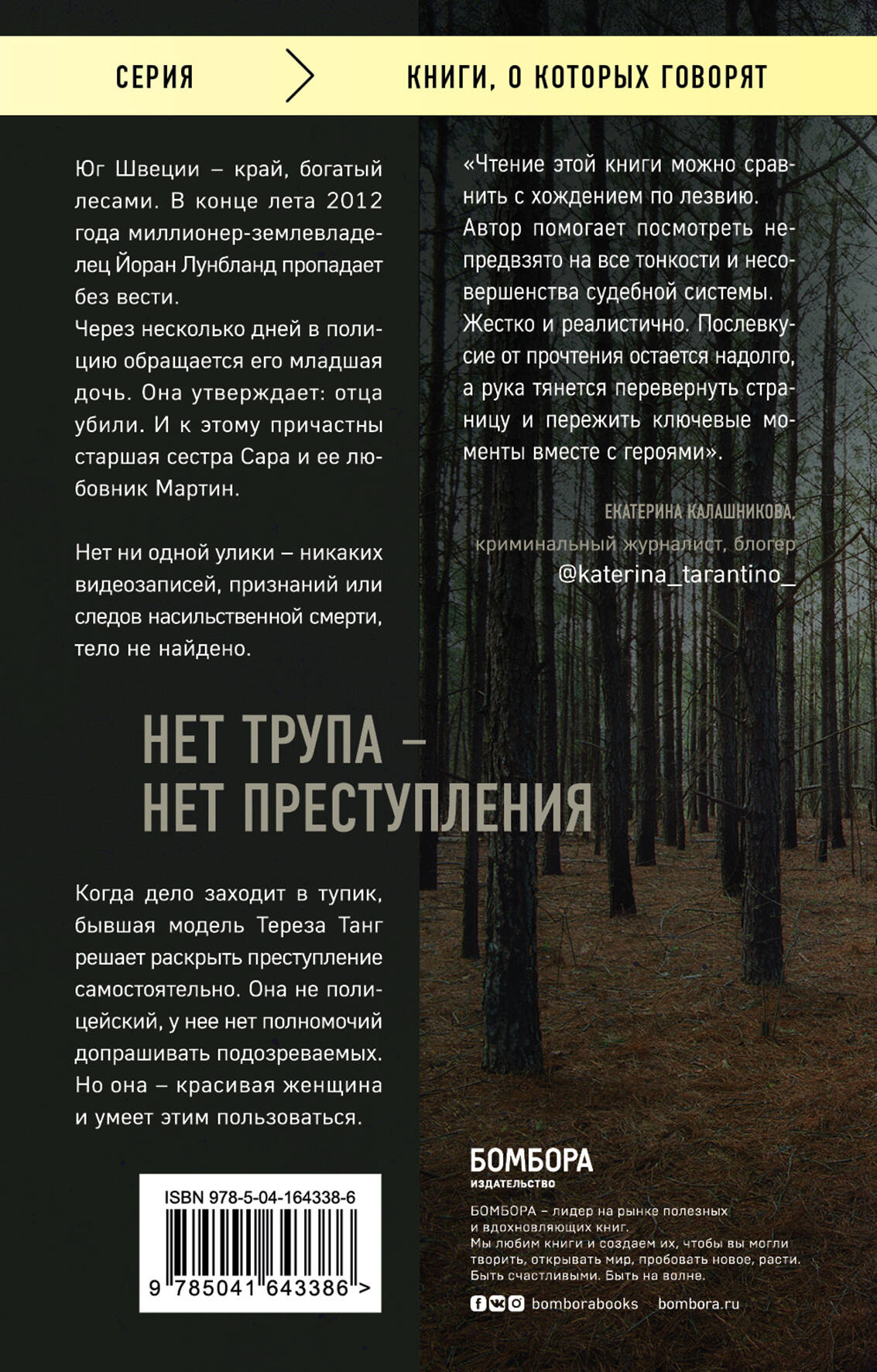 Бестселлер Amazon ⠀⠀⠀«Мой отец пропал; я думаю, что его убили. Возможно… в этом замешана моя сестра». Новинка серии «Criminal Story» - история реального преступления, которое шокировало Швецию. ⠀⠀⠀По статистике каждое пятое убийство совершается внутри семьи. Однако добраться до сути и понять, кто именно совершил преступление, часто бывает практически невозможно. Убийцы хорошо знают привычки своих жертв, а те, в свою очередь, безоговорочно доверяют близким. ⠀⠀⠀Летом 2012 года шведский миллионер, землевладелец Йоран Лундблад словно исчез. В полицию обратилась его младшая дочь Мария, которая представила свою версию произошедшего: отца убили. Показания знакомых и друзей вели к ее старшей сестре Саре. Но… нет тела - нет дела. Заявление об исчезновении получило код 9011 - происшествие, которое даже не считали преступлением. ⠀⠀⠀К поискам мужчины подключилась поисковая организация добровольцев Missing People, и прежде всего - начальник ее оперативного отделения, авантюрная экс-модель Тереза Танг. Раскрытие преступления стало для Терезы навязчивой идеей. Но когда она поняла кто убийца, она сама оказалась в ловушке.| Издательство | Эксмо |