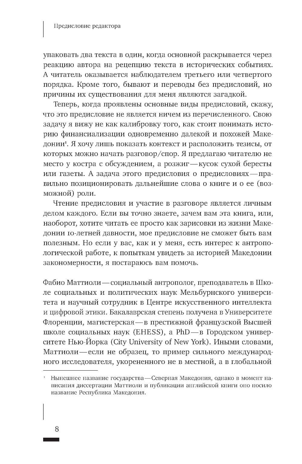 В 2010 году, когда большая часть мира еще не оправилась от кризиса 2008 года, правительство небогатой Македонии неожиданно объявило о запуске масштабного и дорогого проекта по реконструкции столицы - «Скопье-2014». Как урбанистическая среда превратилась в волшебное устройство для отмывания денег? Какими способами люди пытались вернуть себе субъектность в атмосфере финансовой неликвидности? Книга Фабио Маттиоли рассказывает истории предпринимателей-неудачников, рабочих, увязших в долгах, и честолюбивых бюрократов - и показывает, как финансовая экспансия на окраинах Европы превратила идентичности, ценности и надежды на экономическое благополучие в орудия подчинения. Фабио Маттиоли - социальный антрополог, преподаватель в Школе социальных и политических наук Университета Мельбурна, научный сотрудник в Центре искусственного интеллекта и цифровой этики. В 2021 году книга получила почетное упоминание Американской антропологической ассоциации, а в 2023 году - награду Общества экономической антропологии (SEA).| Издательство | Новое литературное обозрение |