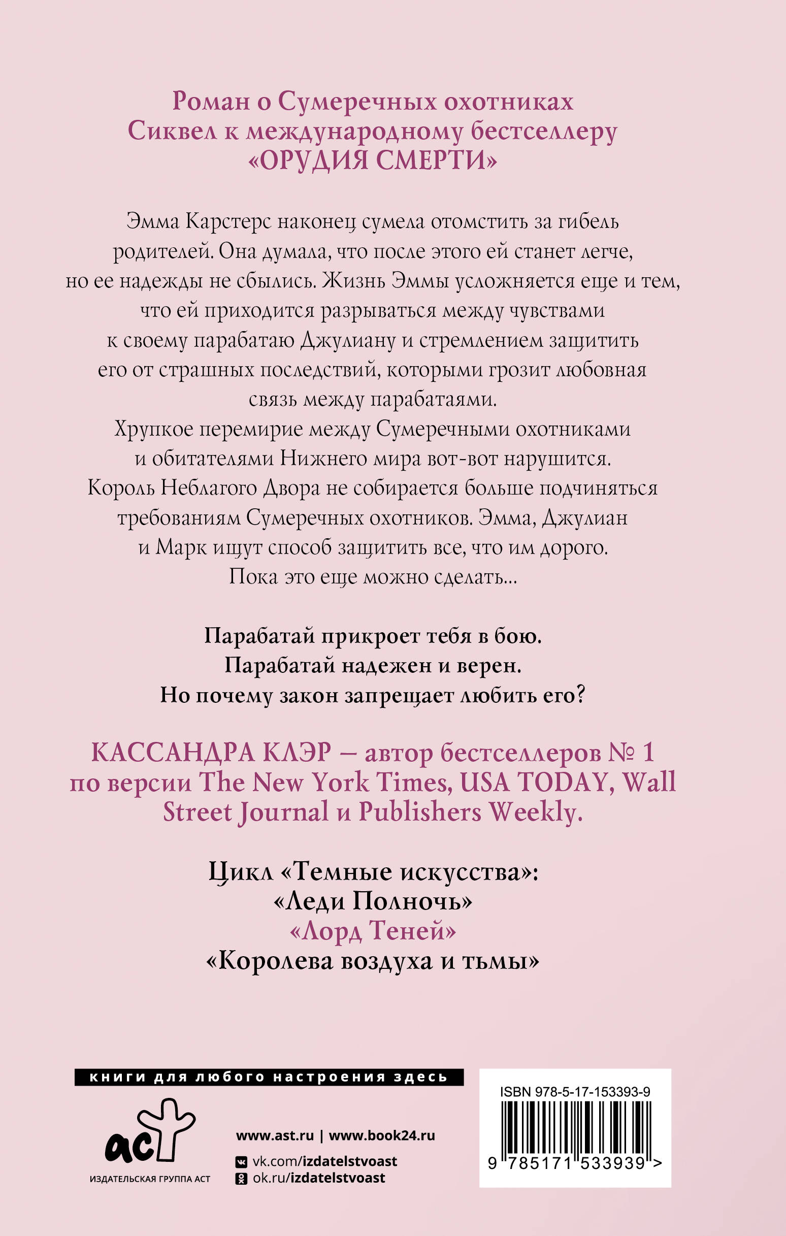 Эмма Карстерс наконец сумела отомстить за гибель родителей. Она думала, что после этого ей станет легче, но ее надежды не сбылись. Ее жизнь усложняется еще и тем, что ей приходится разрываться между своими чувствами к своему парабатаю Джулиану и стремлением защитить его от страшных последствий, которыми грозит любовная связь между парабатаями. Хрупкое перемирие между Сумеречными охотниками и обитателями Нижнего мира вот-вот нарушится. Король Неблагого Двора не собирается больше подчиняться требованиям Сумеречных Охотников. Эмма, Джулиан и Марк ищут способ защитить все, что им дорого. Пока это еще можно сделать…