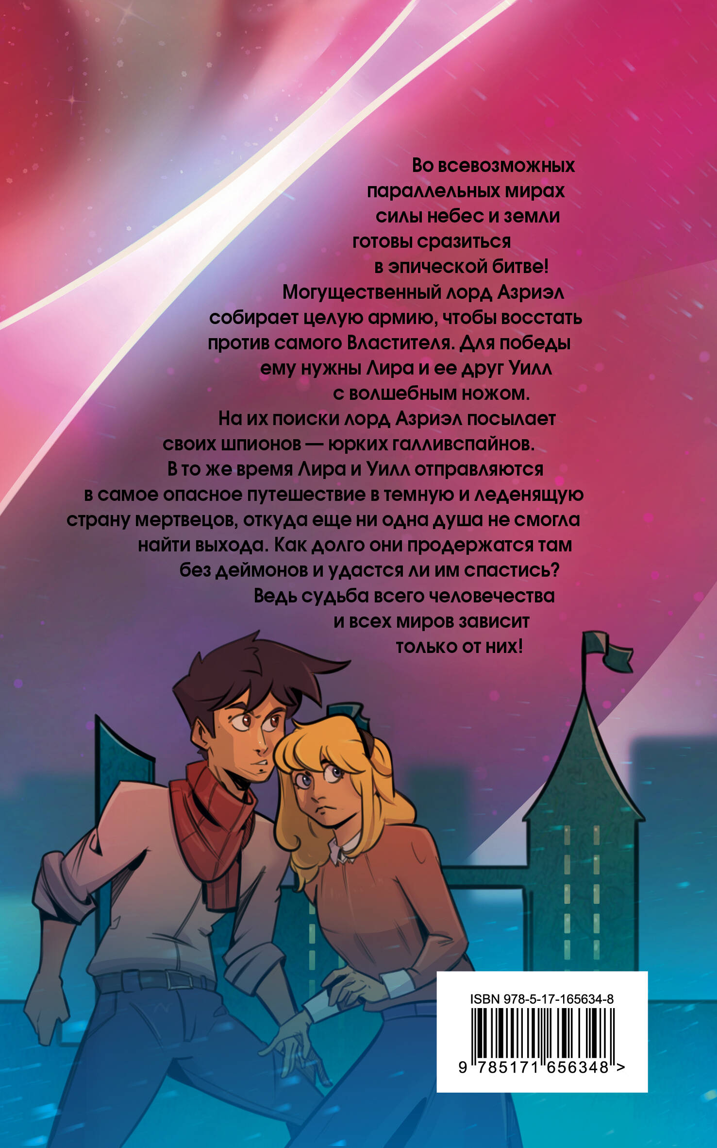 Во всевозможных параллельных мирах силы небес и земли готовы сразиться в эпической битве! Могущественный лорд Азриэл собирает целую армию, чтобы восстать против самого Властителя. Для победы ему нужны Лира и ее друг Уилл с волшебным ножом. На их поиски лорд Азриэл посылает своих шпионов - юрких галливспайнов. В то же время Лира и Уилл отправляются в самое опасное путешествие в темную и леденящую страну мертвецов, откуда еще ни одна душа не смогла найти выхода. Как долго они продержатся там без деймонов и удастся ли им спастись? Ведь судьба всего человечества и всех миров зависит только от них!..| Издательство | Издательство "АСТ" |