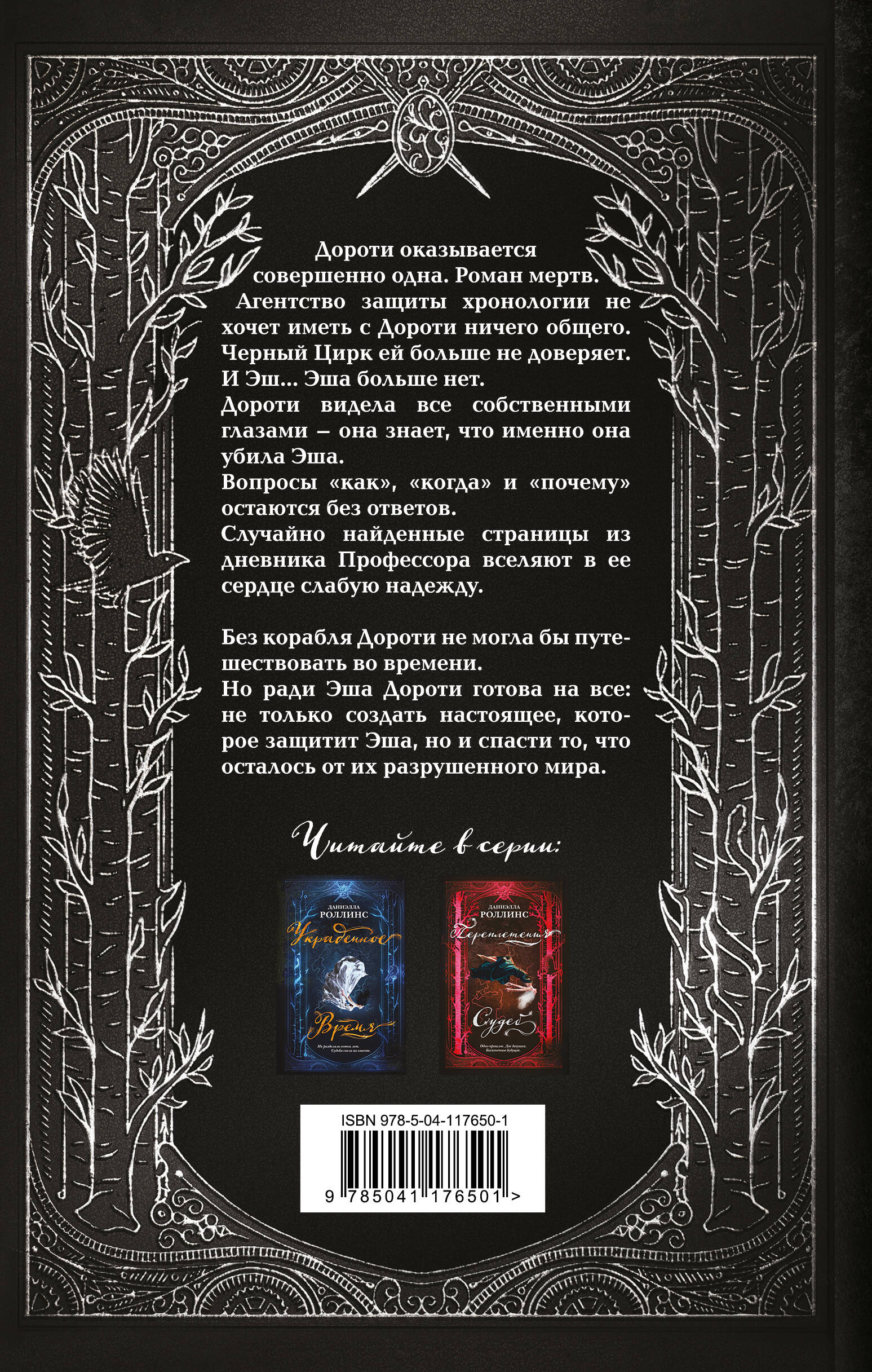 Завершающая часть фантастической трилогии о путешествиях во времени от автора бестселлеров New York Times Даниэллы Роллинс. Дороти оказывается совершенно одна. Роман мертв. Агентство защиты хронологии не хочет иметь с Дороти ничего общего. Черный Цирк ей больше не доверяет. И Эш... Эша больше нет. Дороти видела доказательства собственными глазами - она знает, что именно она убила Эша. Вопросы «как», «когда» и «почему» остаются без ответов. Но найденные пропавшие страницы из дневника Профессора вселяют в ее сердце слабую надежду. Без корабля Дороти не могла бы путешествовать во времени. И ради Эша Дороти сделает всё: она готова не только создать настоящее, которое защитит Эша, но и спасти то, что осталось от их разрушенного мира. Новые приключения, путешествия в прошлое и будущее, запутанные тайны, противостояние злу и любовь, которой не страшны ни время, ни смерть.| Издательство | Эксмо |