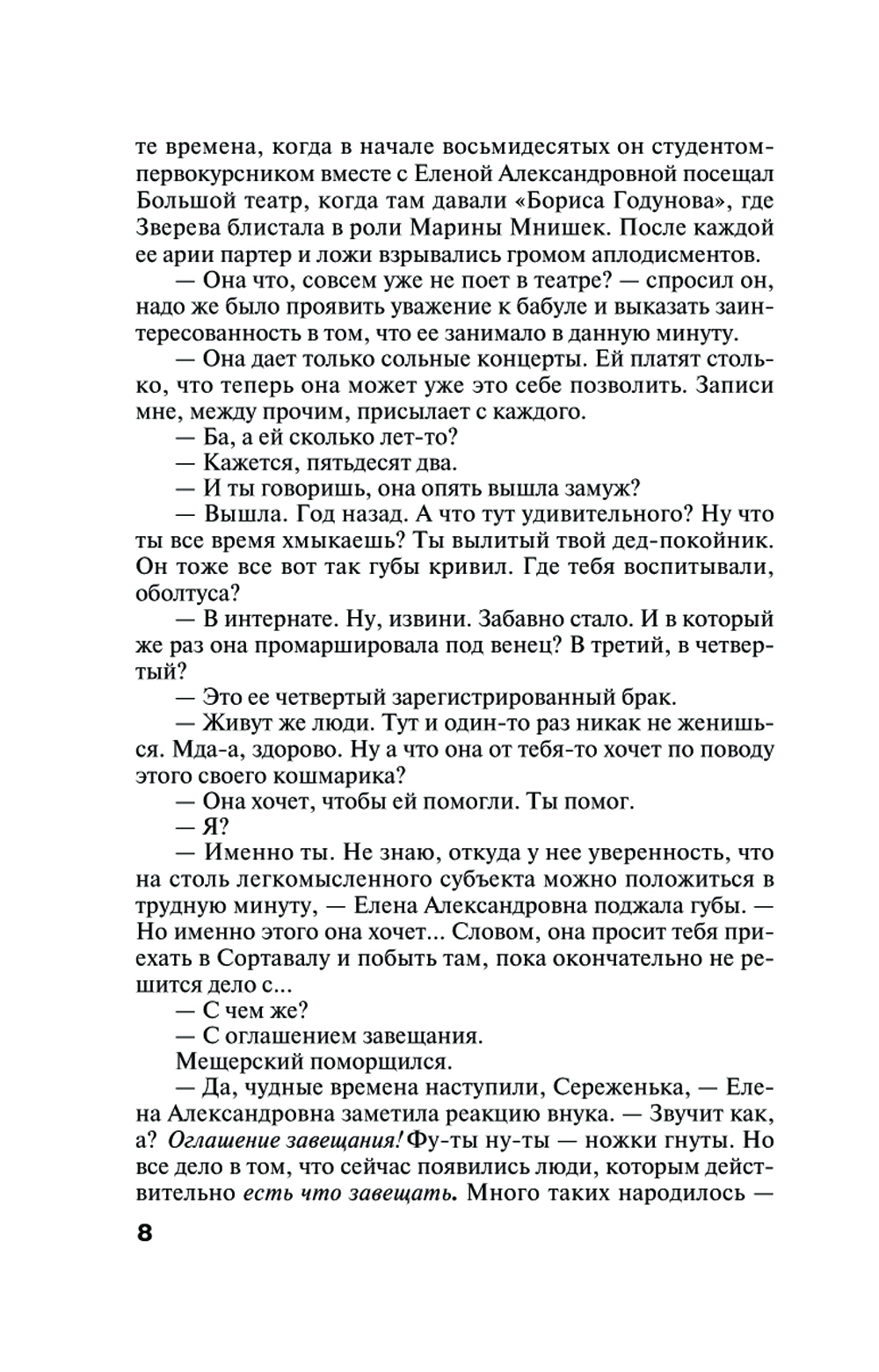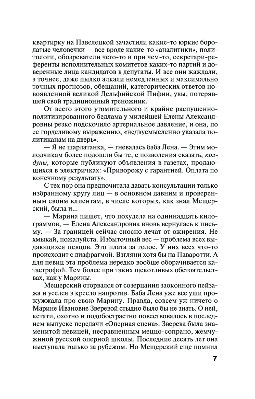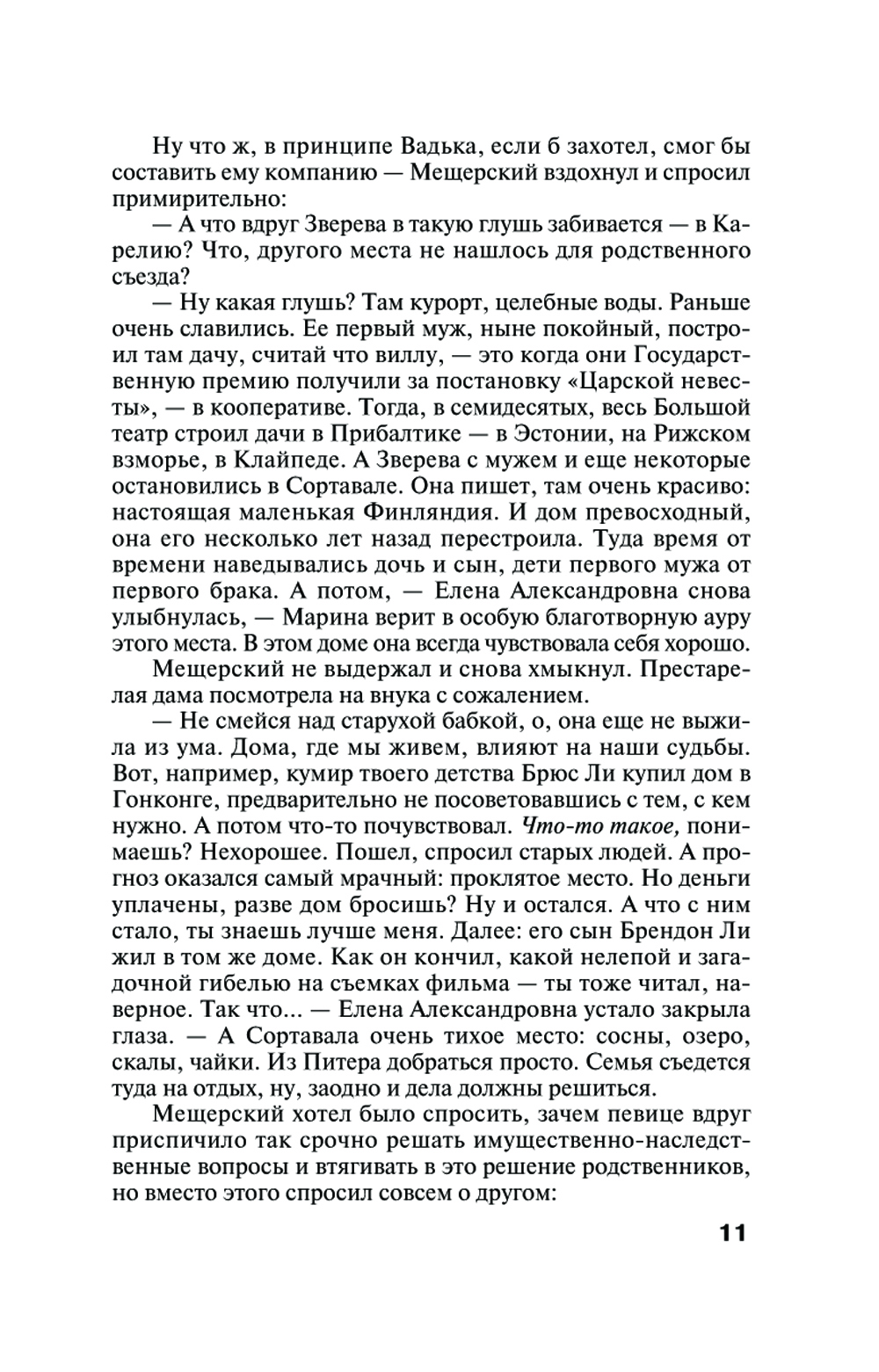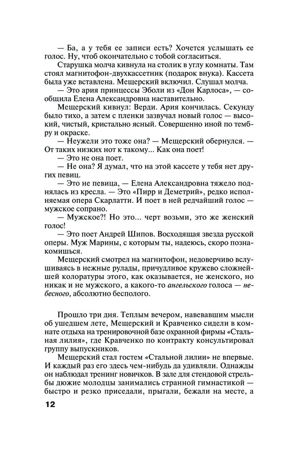 Словно сама смерть поселилась на роскошной даче всемирно известной оперной примадонны Марины Зверевой: ее мужу перерезали горло, ближайшей подруге разбили голову каминными щипцами, саму певицу задушили в собственной спальне. Нет, это не дело рук беглого маньяка-убийцы, бродящего где-то в округе - к такому выводу приходит следствие. Убийца - человек из ближайшего окружения Зверевой. По ходу расследования выясняются все новые, порой весьма пикантные, подробности жизни столь дружной с виду семьи, члены которой одержимы самыми темными страстями и инстинктами...| Издательство | Эксмо |