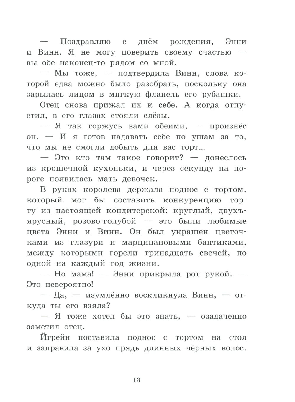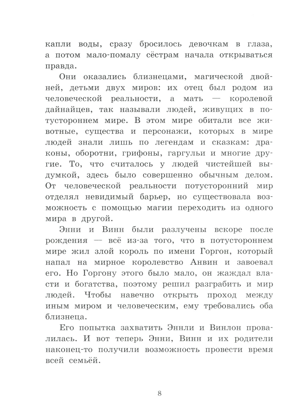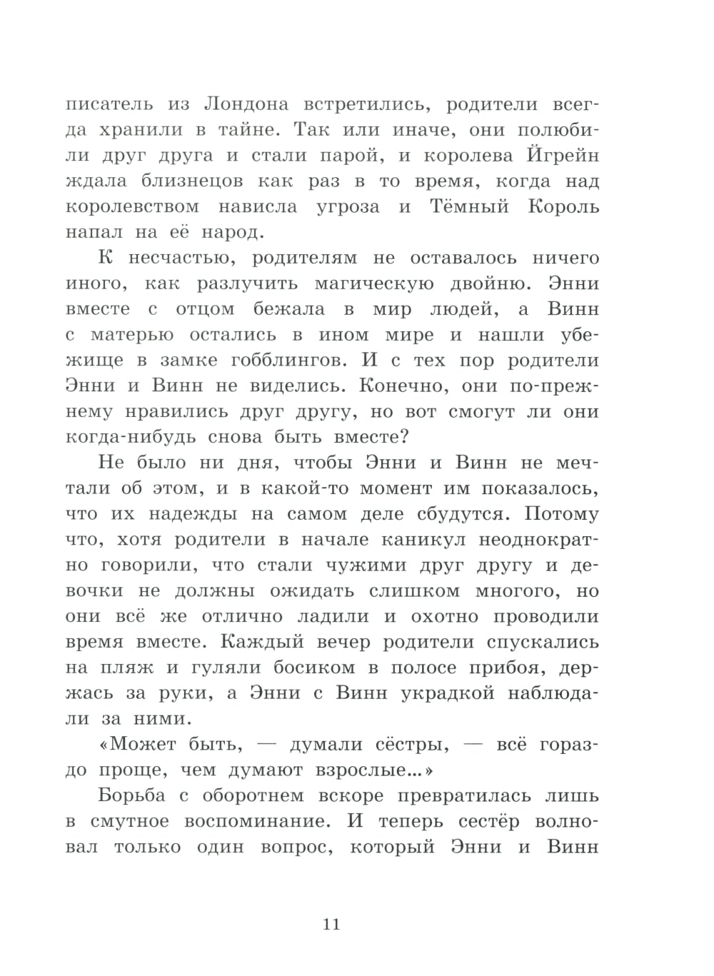Третья книга трилогии о девочках-близнецах популярного немецкого писателя Михаэля Пайнкофера. Сбылась заветная мечта Энни и Винн: они проводят летние каникулы с родителями - как настоящая семья! Но когда Энни с мамой возвращаются в иной мир, их ждёт ужасный сюрприз: Тёмный Король разрушил замок гобблингов и похитил всех его жителей! Он продолжает охотиться за эльфийским камнем и близнецами, ведь только с их помощью он сможет разрушить грань между мирами и захватить мир людей. Хватит ли близнецам сил и мужества, чтобы победить Тёмного Короля раз и навсегда?.. Для детей среднего школьного возраста.| Издательство | Стрекоза |