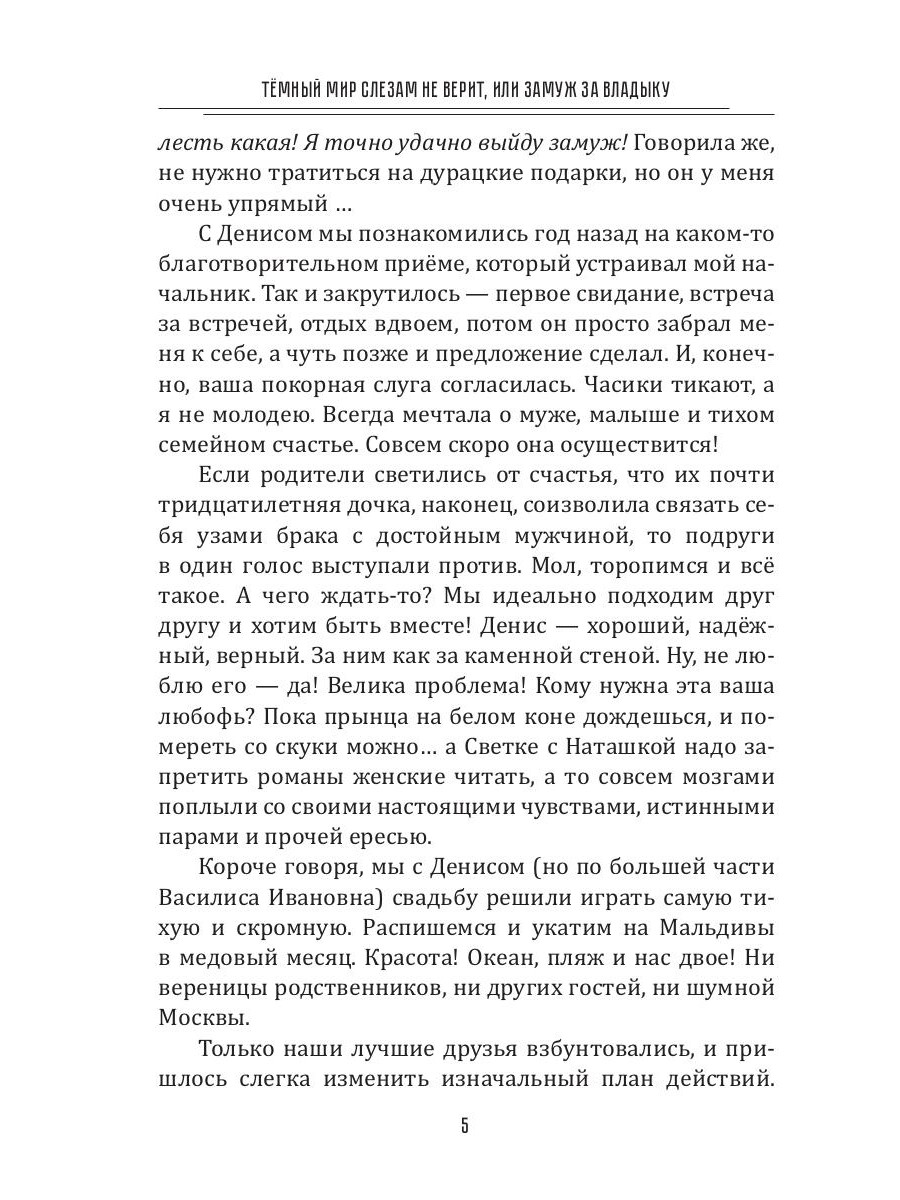 Я знала, что невест на свадьбах воруют, но не думала, что меня занесет аж в другой мир. Загадочный муж, говорящий кот и ведьмовская магия? Да ладна! Так в жизни не бывает. Или бывает? Ну нет, я не согласна, просто так сдаваться не намерена и лить слезы не стану! Все равно же Темный мир слезам не верит…| Издательство | Т8 RUGRAM |