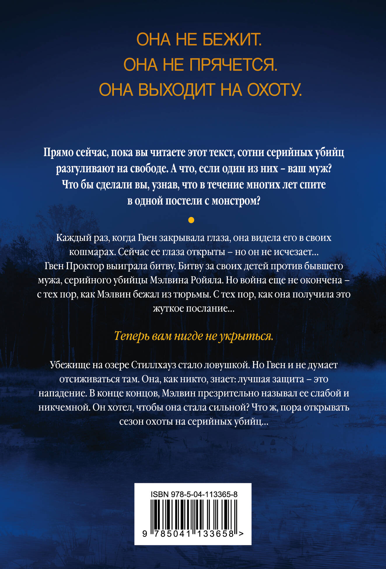 БЕСТСЕЛЛЕР № 1 WALL STREET JOURNAL. БЕСТСЕЛЛЕР AMAZON CHARTS. Прямо сейчас, пока вы читаете этот текст, сотни серийных убийц разгуливают на свободе. А что, если один из них - ваш муж? Что бы сделали вы, узнав, что в течение многих лет спите в одной постели с монстром? Она не бежит. Она не прячется. Она выходит на охоту. Каждый раз, когда Гвен закрывала глаза, она видела его в своих кошмарах. Сейчас ее глаза открыты - но он не исчезает… Гвен Проктор выиграла битву. Битву за своих детей против бывшего мужа, серийного убийцы Мэлвина Ройяла. Но война еще не окончена - с тех пор, как Мэлвин бежал из тюрьмы. С тех пор, как она получила это жуткое послание… Теперь вам нигде не укрыться. Убежище на озере Стиллхауз стало ловушкой. Но Гвен и не думает отсиживаться там. Она, как никто, знает: лучшая защита - это нападение. В конце концов, Мэлвин презрительно называл ее слабой и никчемной. Он хотел, чтобы она стала сильной? Что ж, пора открывать сезон охоты на серийных убийц… Трилогия психологических триллеров Рейчел Кейн, начавшаяся романом «Мертвое озеро», сразу же стала мировым бестселлером. Она получила бешеную популярность по всему миру и немедленно поставила автора в первый ряд мастеров жанра.| Издательство | ООО "Издательство "Эксмо" |