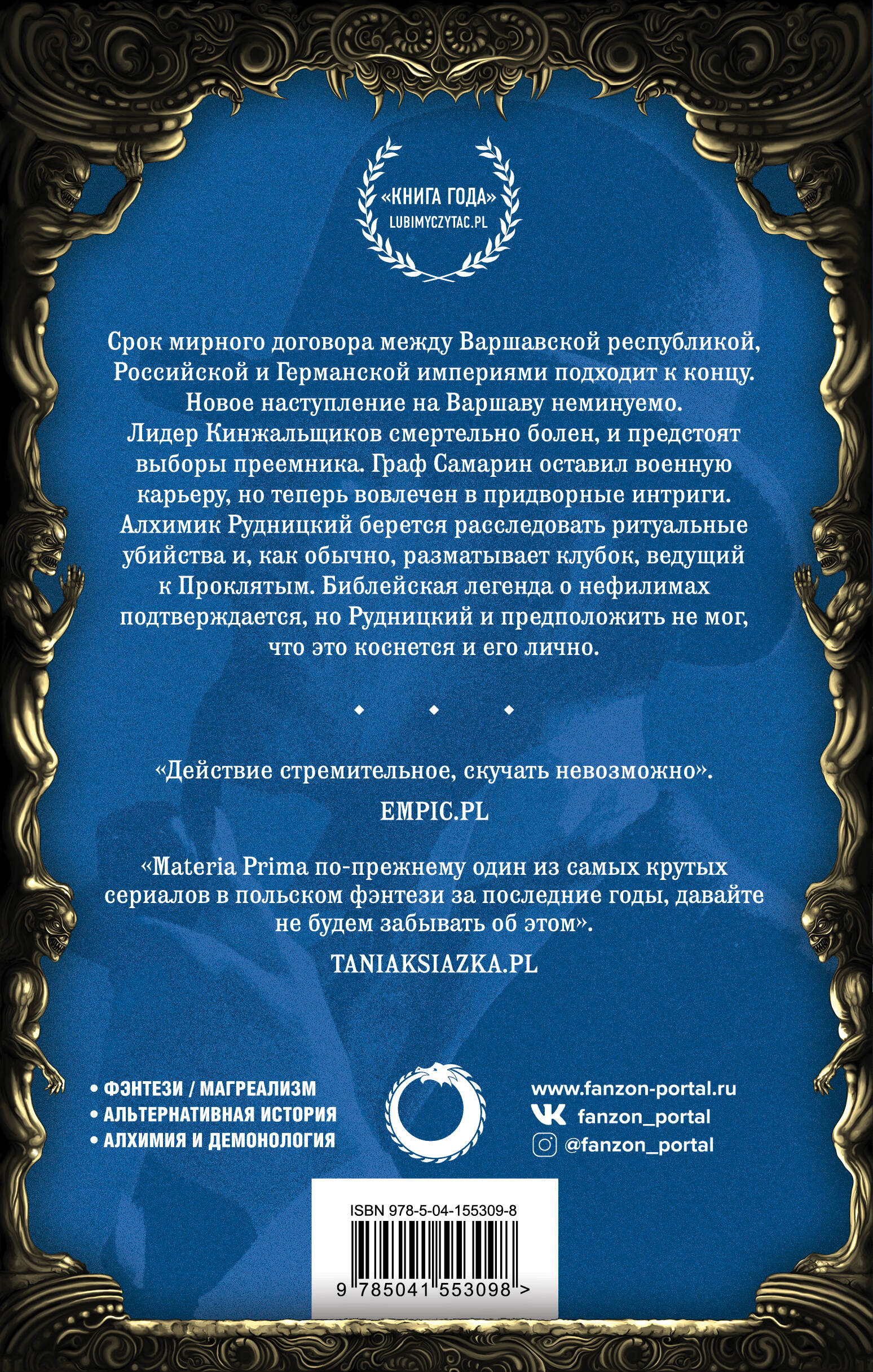 Финал первой трилогии MATERIA PRIMA. Чем закончится последняя схватка с неумолимым противником? Срок мирного договора между Варшавской республикой, Российской и Германской империями подходит к концу. Новое наступление на Варшаву неминуемо. Лидер Кинжальщиков смертельно болен, и предстоят выборы преемника. Граф Самарин оставил военную карьеру, но теперь вовлечен в придворные интриги. Алхимик Рудницкий берется расследовать ритуальные убийства и, как обычно, разматывает клубок, ведущий к Проклятым. Библейская легенда о нефилимах подтверждается, но Рудницкий и предположить не мог, что это коснется и его лично. «Materia Prima по-прежнему один из самых крутых сериалов в польском фэнтези за последние годы, давайте не будем забывать об этом». - taniaksiazka.pl «Действие стремительное, скучать невозможно». - Empic.pl «Это отличная книга, сочетающая в себе фэнтези, исторический и криминальный роман и берущая лучшее из каждого жанра… Что-то мне подсказывает, что на этом приключения Рудницкого не заканчиваются. В любом случае, отправляйтесь в книжные магазины за книгой Пшехшты». - Paradoks.pl «Магия, любовь, заговор, убийство и политика - чего еще можно желать?» - kulturatka.pl «Что произойдет, если автор решит смешать историческую правду с вымыслом в одной книге, добавить сенсационность, магию и существ из иного мира и приправить все интересными персонажами? Как показал Адам Пшехшта, из этого может получиться интересный роман, который доставит читателям хорошее развлечение». - konwenty-poludniowe.pl| Издательство | ООО "Издательство "Эксмо" |