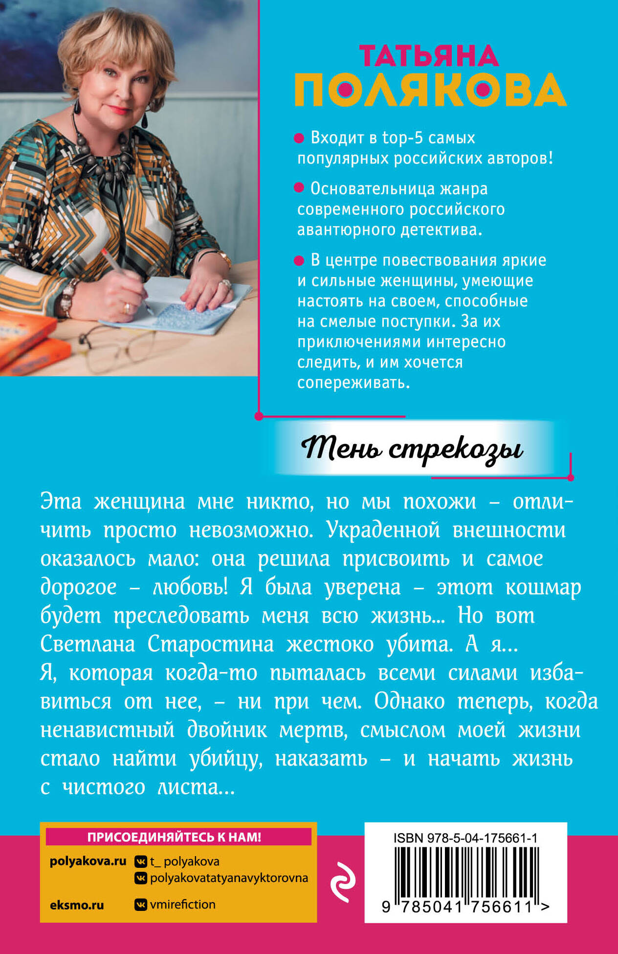 Эта женщина мне никто, но мы похожи - отличить просто невозможно. Украденной внешности оказалось мало: она решила присвоить и самое дорогое - любовь! Я была уверена - этот кошмар будет преследовать меня всю жизнь... Но вот Светлана Старостина жестоко убита. А я… Я, которая когда-то пыталась всеми силами избавиться от нее, - ни при чем. Однако теперь, когда ненавистный двойник мертв, смыслом моей жизни стало найти убийцу, наказать - и начать жизнь с чистого листа… Татьяна Полякова - один из самых популярных российских писателей в жанре детектива. За время писательской карьеры из-под ее пера вышло более 85 книг общим тиражом более 36 миллионов экземпляров. По свидетельствам читателей, романы Татьяны Поляковой - это «захватывающий сюжет и непредсказуемая развязка, обаятельные герои и невероятные приключения, легкий стиль и яркие диалоги».| Издательство | ООО "Издательство "Эксмо" |