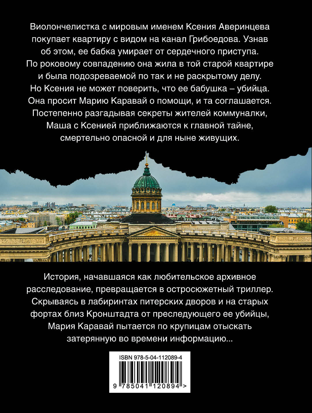 1959-й год. В городе Ленинграде ,в коммуналке отравлена кем-то из обитателей квартиры старушка - божий одуванчик из «бывших». Тогда преступник так и не был найден. И вот полстолетия спустя Мария Каравай берется за расследование старого убийства. Виолончелистка с мировым именем Ксения Аверинцева покупает квартиру с видом на канал Грибоедова. Узнав об этом, ее бабка умирает от сердечного приступа. По роковому совпадению она жила в той старой квартире и была подозреваемой по так и не раскрытому делу. Но Ксения не может поверить, что ее бабушка - убийца. Она просит Марию Каравай о помощи, и та соглашается. Постепенно разгадывая секреты жителей коммуналки, Маша с Ксенией приближаются к главной тайне, смертельно опасной и для ныне живущих. История, начавшаяся как любительское архивное расследование, превращается в остросюжетный триллер. Скрываясь в лабиринтах питерских дворов и на старых фортах близ Кронштадта от преследующего ее убийцы, Мария Каравай пытается по крупицам отыскать затерянную во времени информацию... Детективы Дарьи Дезомбре отличает наличие тонкой интриги, мистических тайн и детального экскурса в историю, культуру и искусство. Над каждой новой книгой Дезомбре работает кропотливо. Воссоздавая прошлое, она читает мемуары, проводит много часов в библиотеках и музеях, собирает фотографии одежды и предметов прошлых эпох из семейных альбомов, журналов. Все книги автора переведены на иностранные языки и пользуются популярностью в Европе.| Издательство | ООО "Издательство "Эксмо" |