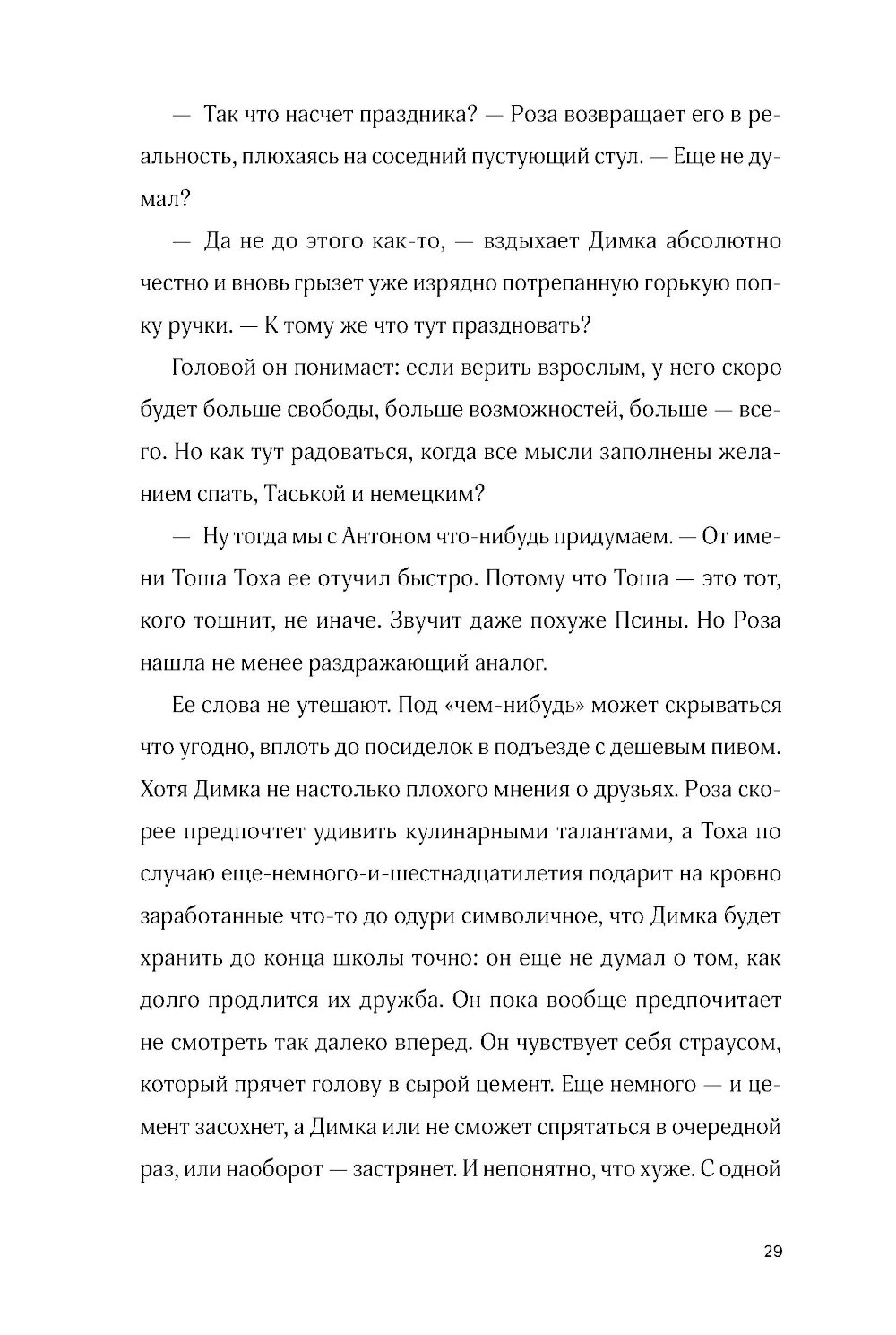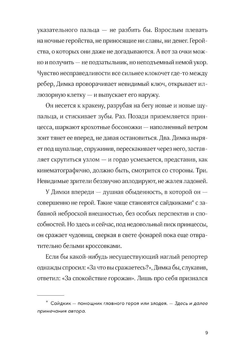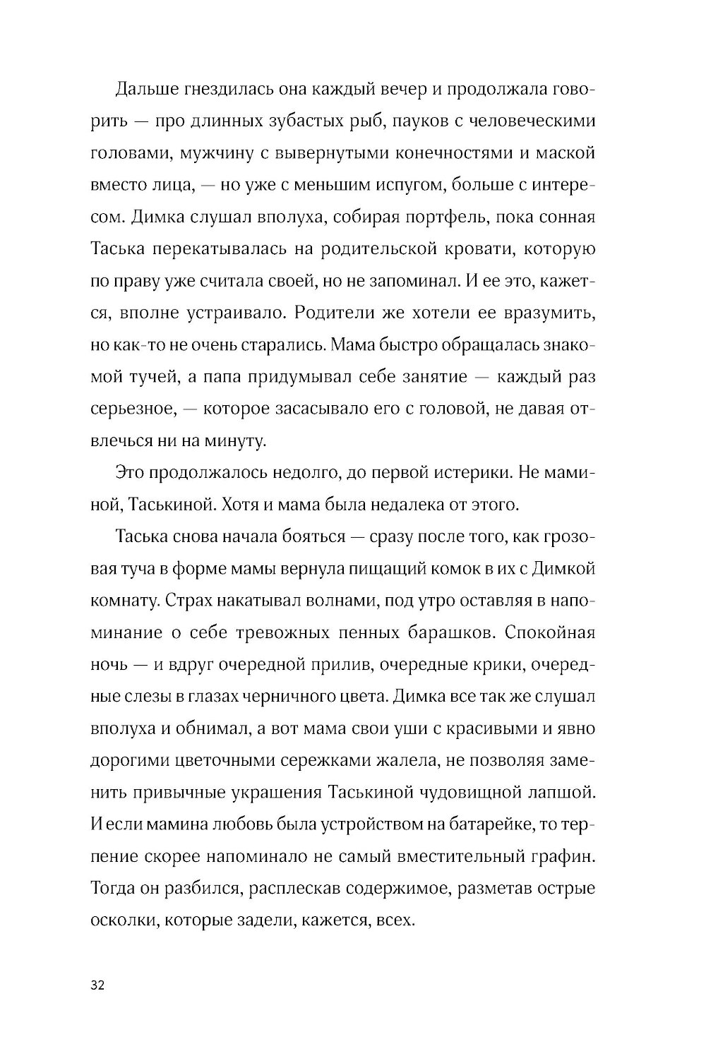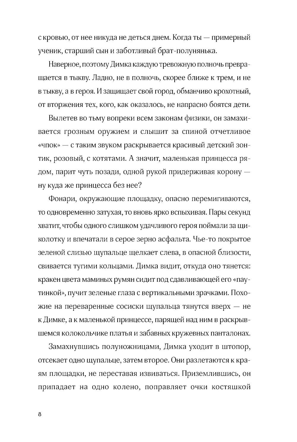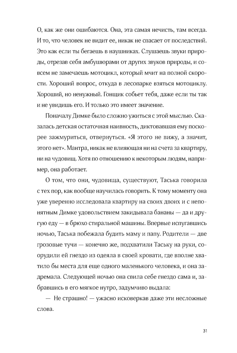 Пятнадцатилетний Димка - хороший сын и примерный ученик. В школе он получает пятерки и стойко терпит насмешки одноклассников, а дома по просьбе родителей заботится о младшей сестре. Когда та начинает рассказывать истории об оживающих ночью игрушках и летающих зубастых рыбах, Димка принимает это за обыкновенные выдумки. Пока сам не начинает видеть их - монстров, которые поджидают во дворе, заглядывают в окна. Так он попадает в Игру, где возможно все: даже стать бесстрашным воином, убивающим чудовищ. Однажды он встречает в Игре девушку-птицу по имени Ада. Димка смутно помнит ее лицо - она училась в его школе, а потом пропала без вести. Оказывается, Игра - не безобидная иллюзия. Она оплетает весь город... И чудовища более чем реальны.| Издательство | Marshmallow Books |