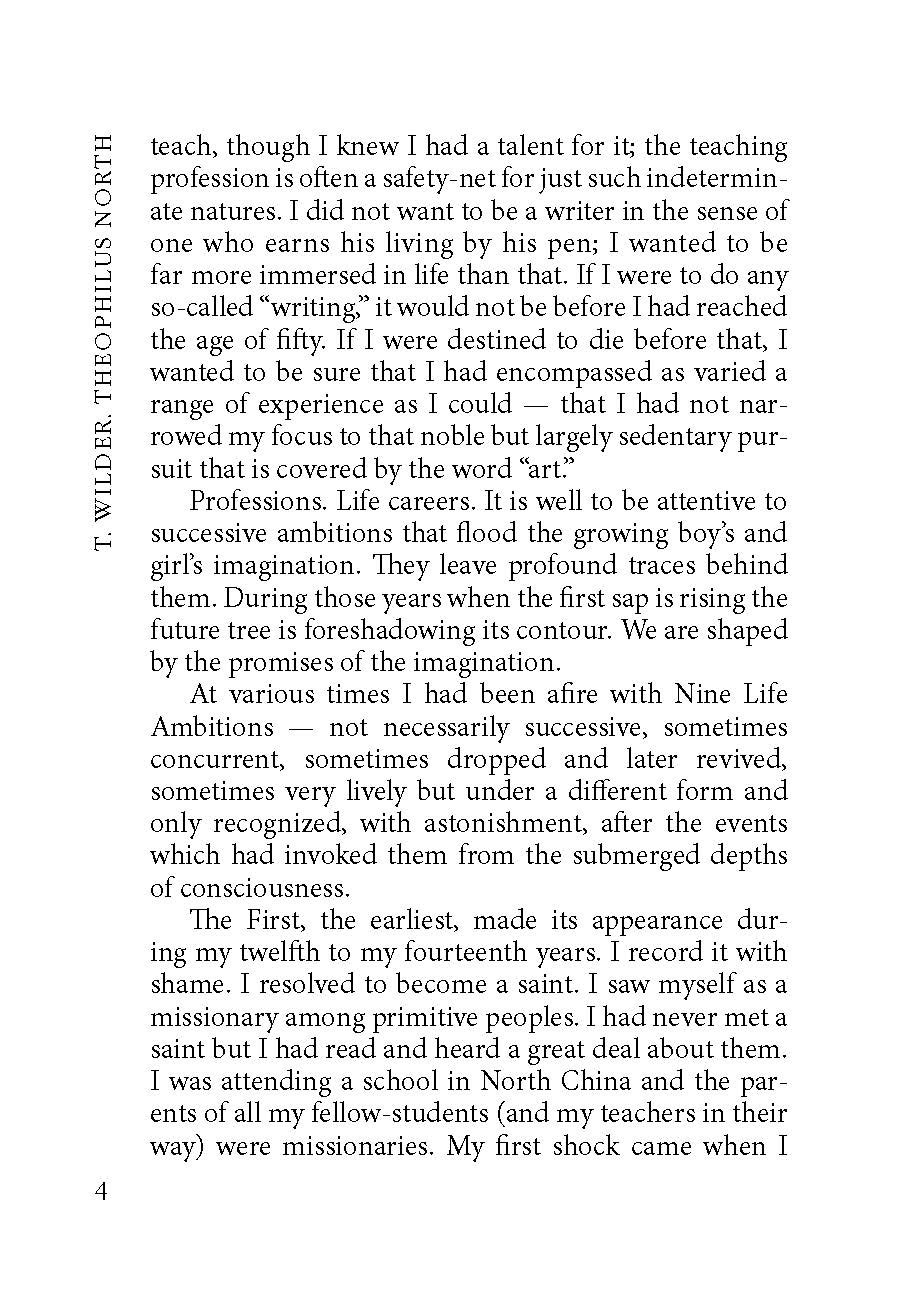 «Теофил Норт» - последний роман писателя, более или менее автобиографический, во всяком случае, сам Уайлдер считал главного героя своим alter ego.