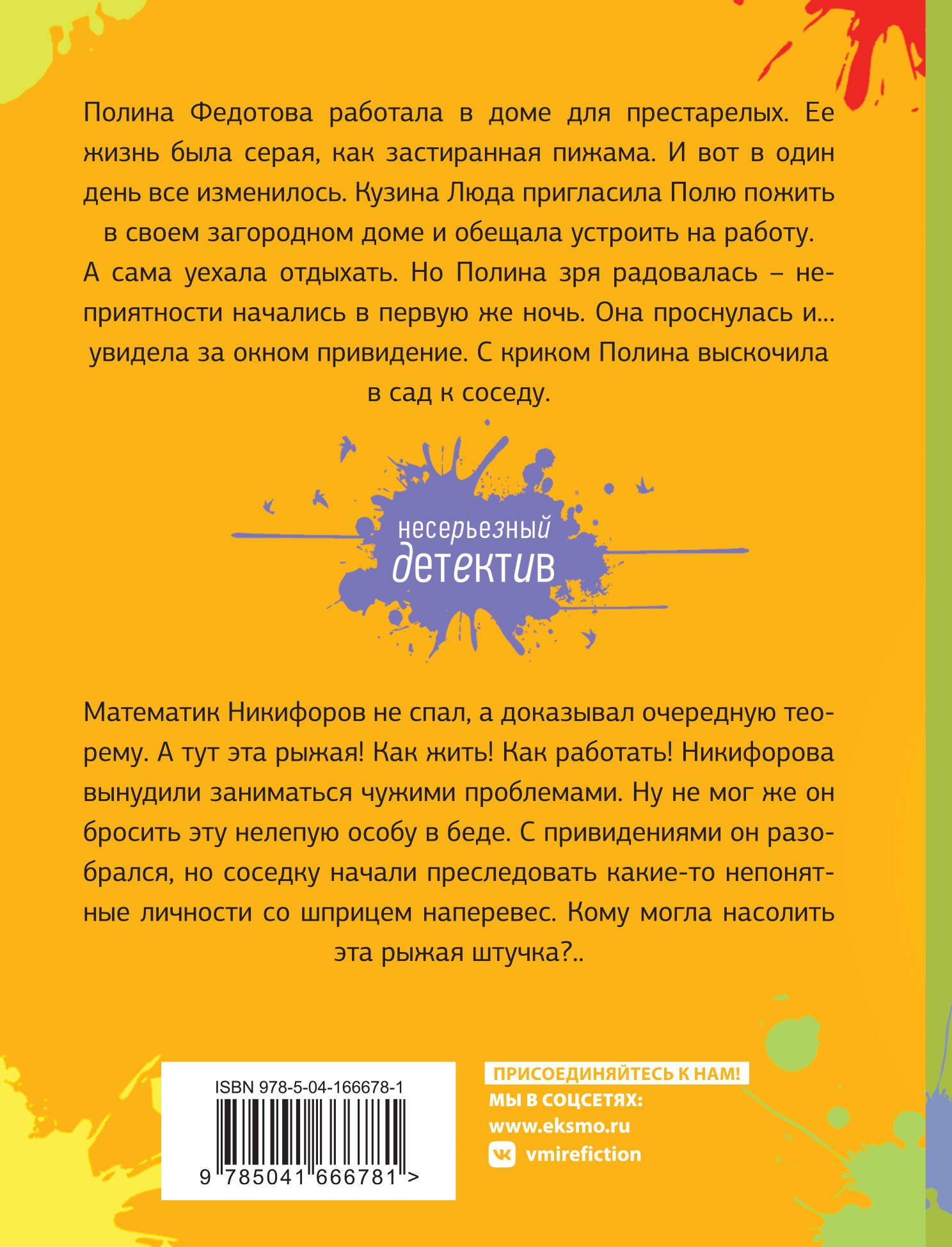 Галина Куликова входит в TOП-15 самых читаемых отечественных авторов! В изящных детективах Галины Куликовой вас ждет стремительный вихрь приключений, остроумная комедия обстоятельств, невероятные трюки и очарование всепобеждающей женской логики! Полина Федотова работала в доме для престарелых. Ее жизнь была серая, как застиранная пижама. И вот в один день все изменилось. Кузина Люда пригласила Полю пожить в своем загородном доме и обещала устроить на работу. А сама уехала отдыхать. Но Полина зря радовалась - неприятности начались в первую же ночь. Она проснулась и… увидела за окном привидение. С криком Полина выскочила в сад к соседу. Математик Никифоров не спал, а доказывал очередную теорему. А тут эта рыжая! Как жить! Как работать! Никифорова вынудили заниматься чужими проблемами. Ну не мог же он бросить эту нелепую особу в беде. С привидениями он разобрался, но соседку начали преследовать какие-то непонятные личности со шприцем наперевес. Кому могла насолить эта рыжая штучка?…| Издательство | Эксмо |