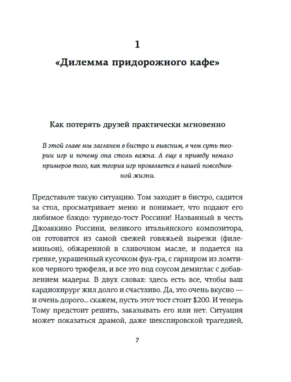 Теория игр - это метод принятия решений. Она предполагает, что цель каждого игрока - максимально увеличить свою выгоду, какой бы та ни была. Играть могут и друзья, и враги, и политические партии, и государства, иными словами, играть может кто или что угодно. В анализе игр есть одна проблема: игроку очень трудно узнать, что сулит выгоду всем остальным, а иные из нас с трудом представляют себе даже собственные цели и выгоду. На многих примерах Хаим Шапира показывает, что такое теория игр и чем могут закончиться различные взаимодействия между теми, кто принимает решения. «Может ли теория игр улучшить нашу способность принимать повседневные решения? Здесь мнения расходятся. Одни эксперты уверены в том, что теоретики игр оказывают решающее влияние чуть ли не на все события в мире. Но есть и другие эксперты, которые считают, что теория игр - это не более чем занимательная математика, и они не хотят уступать. Истина скрыта где-то между этих полюсов, хотя и не точно посередине. В любом случае теория игр - это захватывающая область мышления и она дает нам понять очень многое в решении самых разных жизненных проблем». (Хаим Шапира)| Издательство | КоЛибри |