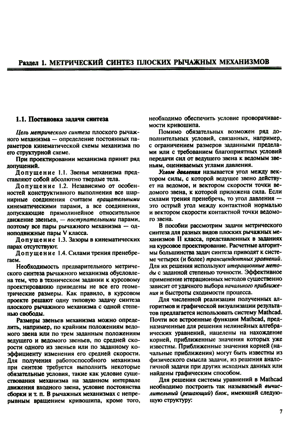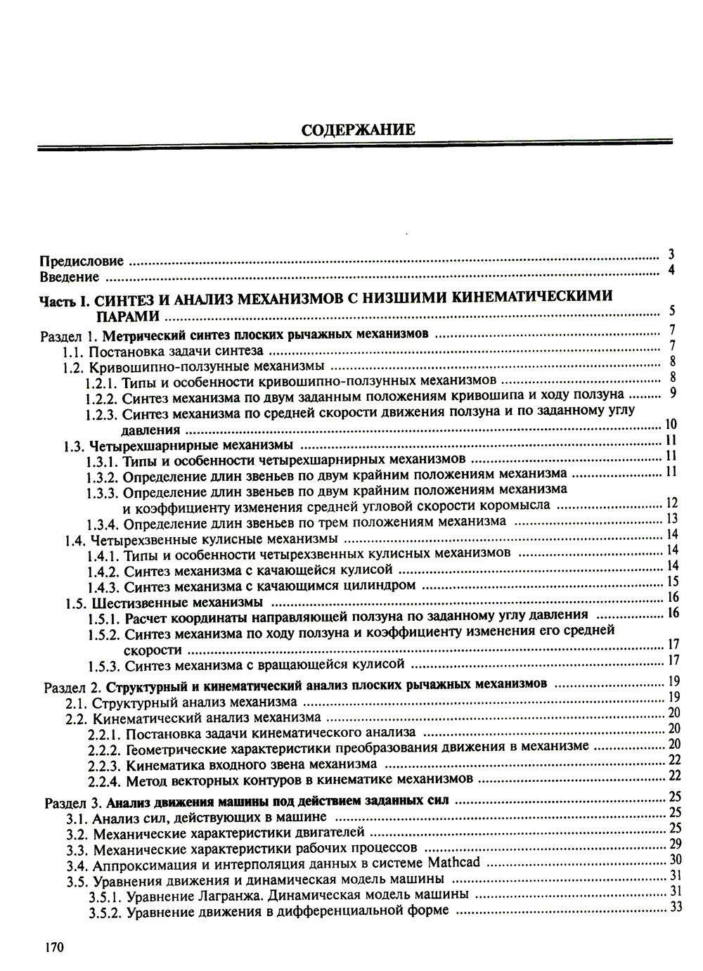 В краткой форме изложены основные разделы дисциплины «Теория механизмов и машин», охватывающие структурный анализ и метрический синтез механизмов, их кинематическое и динамическое исследования, синтез зубчатых зацеплений и проектирование планетарных и кулачковых механизмов, позволяющие разработать алгоритмы как графоаналитического, так и численного их исследования. Приведены примеры выполнения листов курсового проекта с использованием математического пакета Mathcad и графических пакетов AutoCAD и «Компас». Содержание учебного пособия соответствует курсу лекций, читаемому в МГТУ им. Н.Э. Баумана. Для студентов 3-го курса машиностроительных специальностей, выполняющих курсовой проект (курсовую работу) по дисциплине «Теория механизмов и машин».| Издательство | МГТУ им. Баумана |