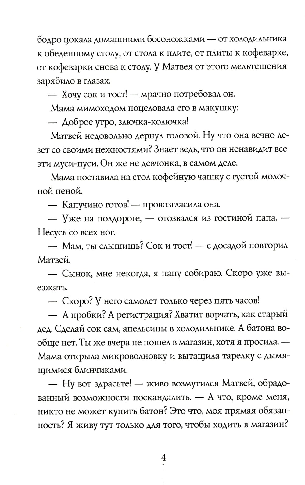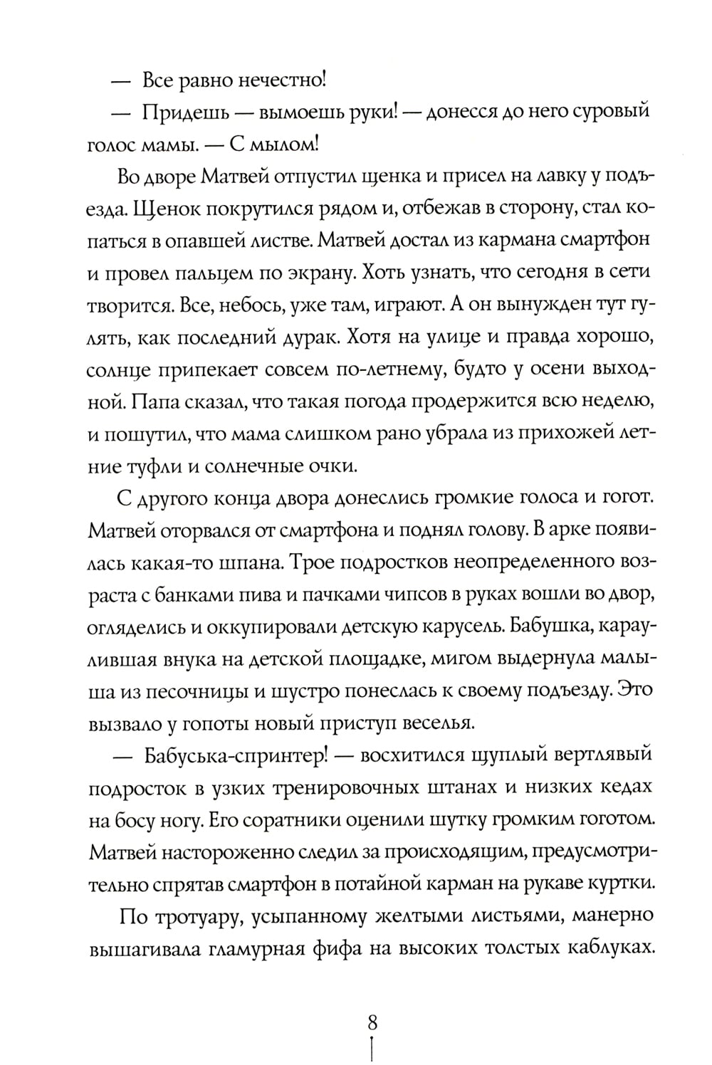 «Назад в будущее», говорите? «Назад в свою вероятность» - задача куда сложнее! И решать ее Матвею предстоит в одиночку - ведь все началось поздним вечером, когда он на минуту вышел из дома и наткнулся на местных хулиганов… Тот понедельник вообще не заладился: утром отключили интернет, в школе оставили после уроков, а потом мама огорошила ужасной новостью - с ними теперь будет жить чужая девчонка! Как мог закончиться такой день? Бегством от трех бандитов, мечтающих отобрать у Матвея телефон; поездкой в полупустом автобусе на окраину города; отчаянной попыткой спрятаться в заброшенной бетонной трубе. И попаданием в альтернативную вселенную, где никакого Матвея Добровольского не существует, а вместо него - девчонка по имени Милослава!| Издательство | ИД КомпасГид |