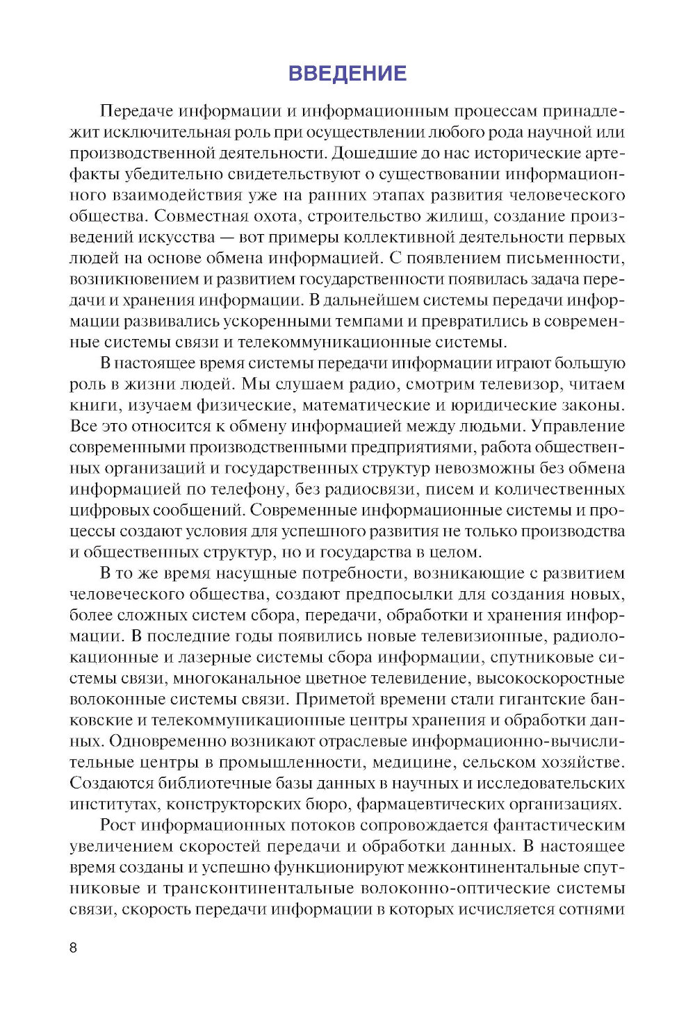 Представленные материалы раскрывают общие черты и принципы построения радиотехнических и оптических телекоммуникационных систем. Большое внимание уделено изучению статистических характеристик случайных процессов и выделению информационной составляющей на фоне случайных помех, методам сжатия информации, помехоустойчивому кодированию и элементной базе устройств отображения информации. Подробно рассмотрены устройство и принципы работы согласованных, оптимальных и цифровых нелинейных фильтров, многоканальные, цифровые радиорелейные, спутниковые и волоконно-оптические системы передачи информации. Соответствует требованиям ФГОС ВО последнего поколения. Для студентов, обучающихся по направлениям «Телекоммуникационные системы», «Системы связи», «Автономные информационные и управляющие системы».| Издательство | КноРус |
