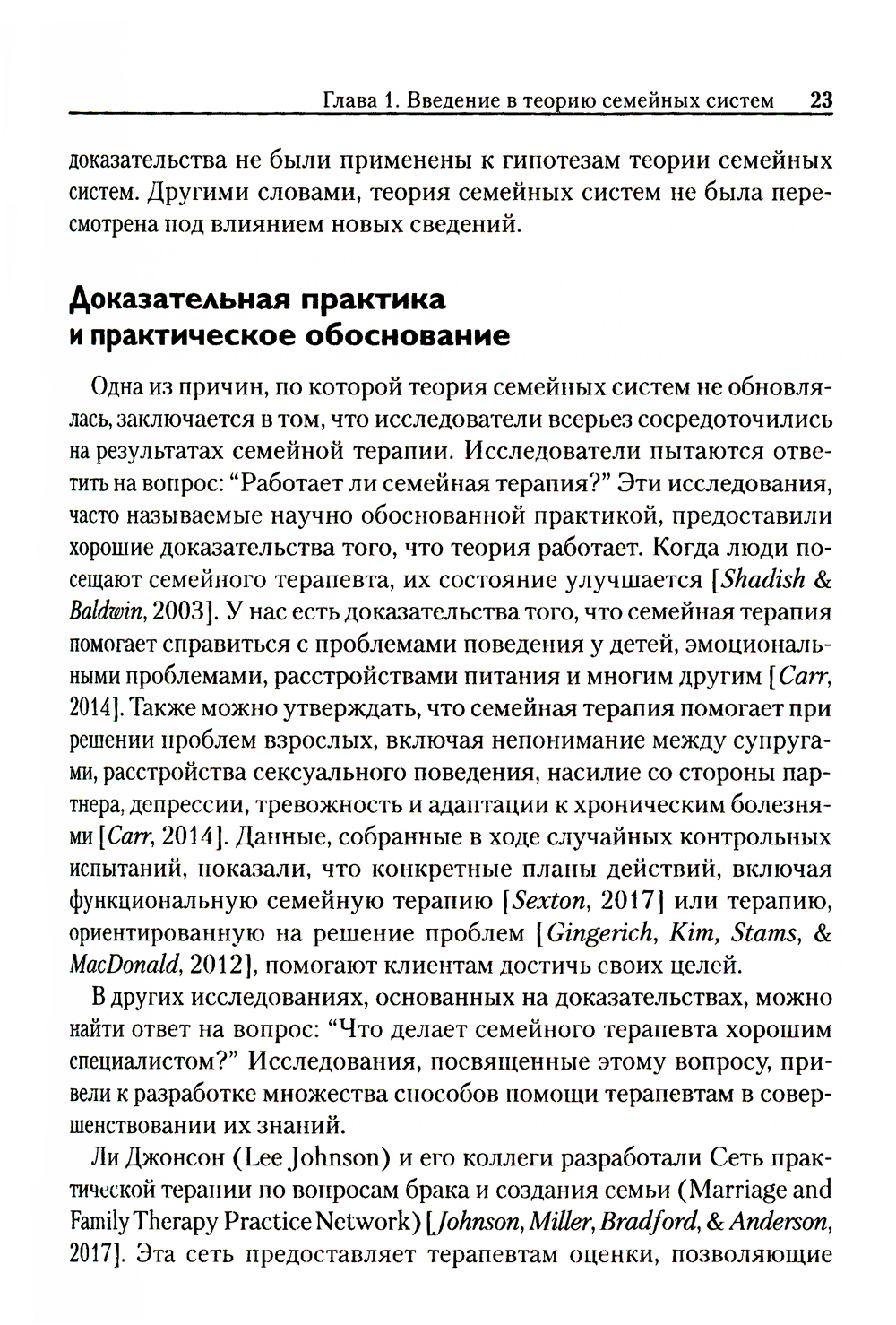 В этой книге подробно и доступно рассматривается использование науки об автономии и адаптации как основы всех подходов семейной терапии, а также объясняется, каким образом клиницисты могут использовать эту науку для расширения практических навыков и умений. В Теории семейных систем основной акцент сфокусирован на интегрировании науки и теории в клиническую практику. Книга предоставляет обзор научных данных из различных областей и связывает их с теорией семейных систем через ключевую структуру автономии и адаптации. Опираясь на исследования в области генетики, физиологии, регуляции эмоций, привязанности и триангуляции, в главах книги подробно описывается, как комплексная научно обоснованная теория семейных систем может быть применена к целому ряду проблемных ситуаций в сфере семейных отношений. В тексте рассматривается связь автономии и привязанности с системами власти, привилегий и угнетения. Подкрепленная практическими примерами из практики, а также вопросами для размышления, кратким содержанием глав и списками ресурсов для дальнейшего привлечения читателя, Теория семейных систем - учебник, необходимый как для студентов, изучающих брачную и семейную терапию, так и для специалистов в области психического здоровья, работающих с семьями.| Издательство | Диалектика |