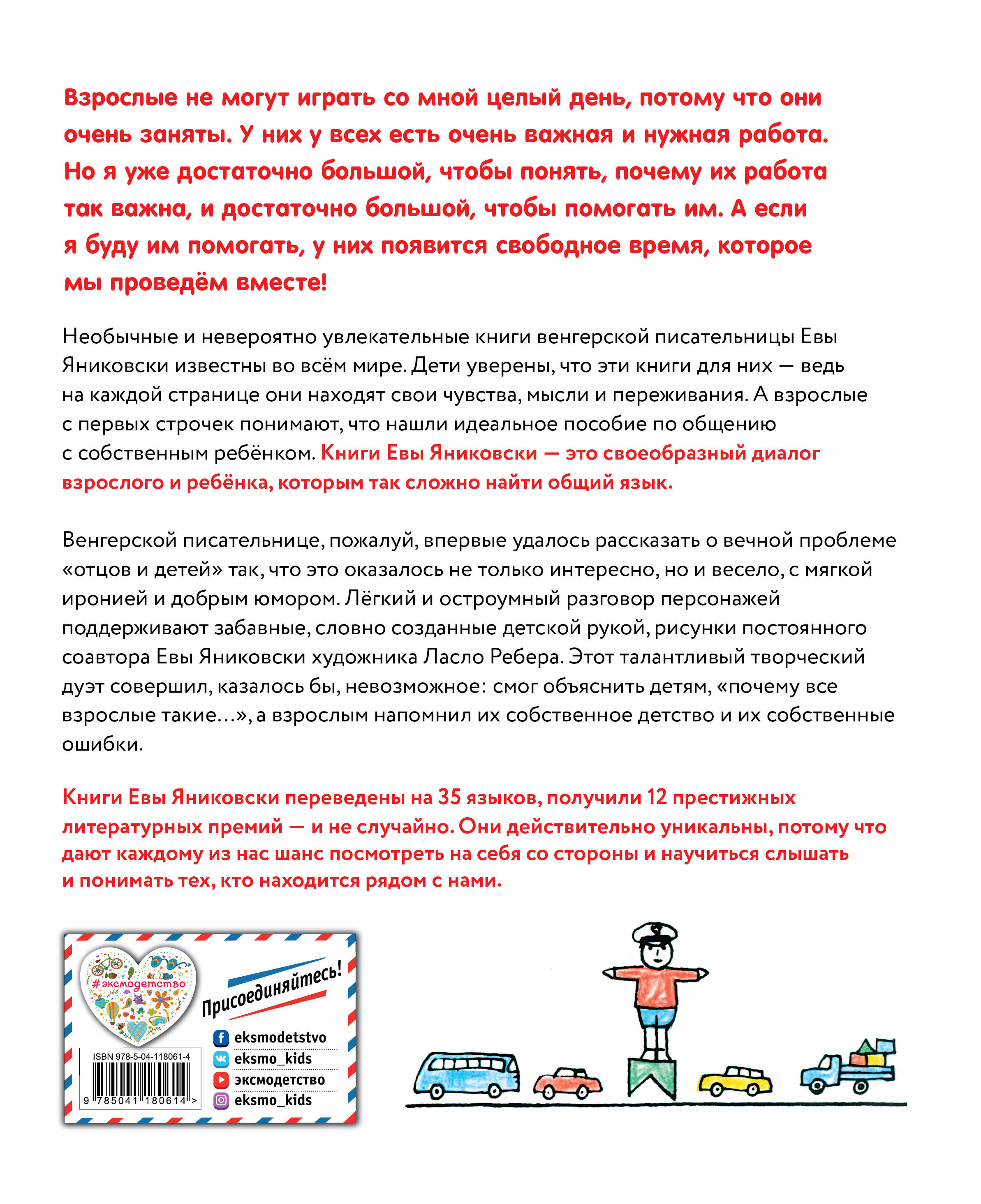 Книги венгерской писательницы Евы Яниковски, написанные от лица ребёнка и наполненные искрящимся юмором и лёгкой иронией, стали классикой детской литературы. Но их с большим удовольствием читают и взрослые, которым очень важно понять, чем живут и что чувствуют их дети. Главная особенность уникальных книг Евы Яниковски - это удивительная ёмкость и простота коротких текстов, которые с безупречной точностью раскрывают внутренний мир ребёнка. А кроме того, это своеобразный диалог на нестандартные темы между детьми и взрослыми, который помогает сократить разрыв между поколениями. Ева Яниковски окончила два университета: сначала в родном городе Сегеде, а затем - в Будапеште. Она изучала философию, этнографию, психологию, социологию и большую часть жизни посвятила работе с детьми и молодежью. Неудивительно, что её произведения переведены на тридцать пять языков и отмечены множеством престижнейших литературных премий и наград, в том числе Немецкой литературной молодежной премии. Писательница стала кавалером международного Ордена Улыбки, который присуждается известным людям, приносящим радость детям, а также была удостоена Офицерского креста ордена «За заслуги перед Венгерской Республикой». По мотивам её книг были поставлены детские спектакли, выпущено несколько мультфильмов. Неизменным иллюстратором книг Евы Яниковски был венгерский художник Ласло Ребер, лауреат Немецкой молодежной литературной премии и премии имени Г.-Х. Андерсена, а также обладатель многих других наград. Именно Л. Реберу удалось наиболее достоверно передать в своих работах внутренний мир ребёнка.| Издательство | ООО "Издательство "Эксмо" |