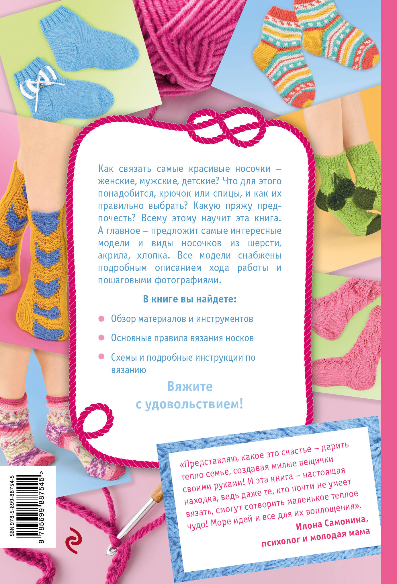 Прекрасная красочная книга для начинающих вязальщиц. В ней представлены самые интересные, оригинальные и выполненные в самых разных техниках модели пинеток и носочков для самых маленьких и для детей постарше. Каждая модель описана настолко подробно и понятно, к ней даны простые и легко читаемые схемы, что вязание становится сущим удовольствием! Носочки для девочек и для мальчиков, пинетки-кроссовки, пинетки-сандалики, носки с помпонами и разноцветные носки. Те, что вяжутся спицами и другие, крючком! Порадовать своего малыша теплой вещью, связанной своими руками, мечта каждой мамы или бабушки. И замечательный подарок для семьи друзей, в которой есть дети.
