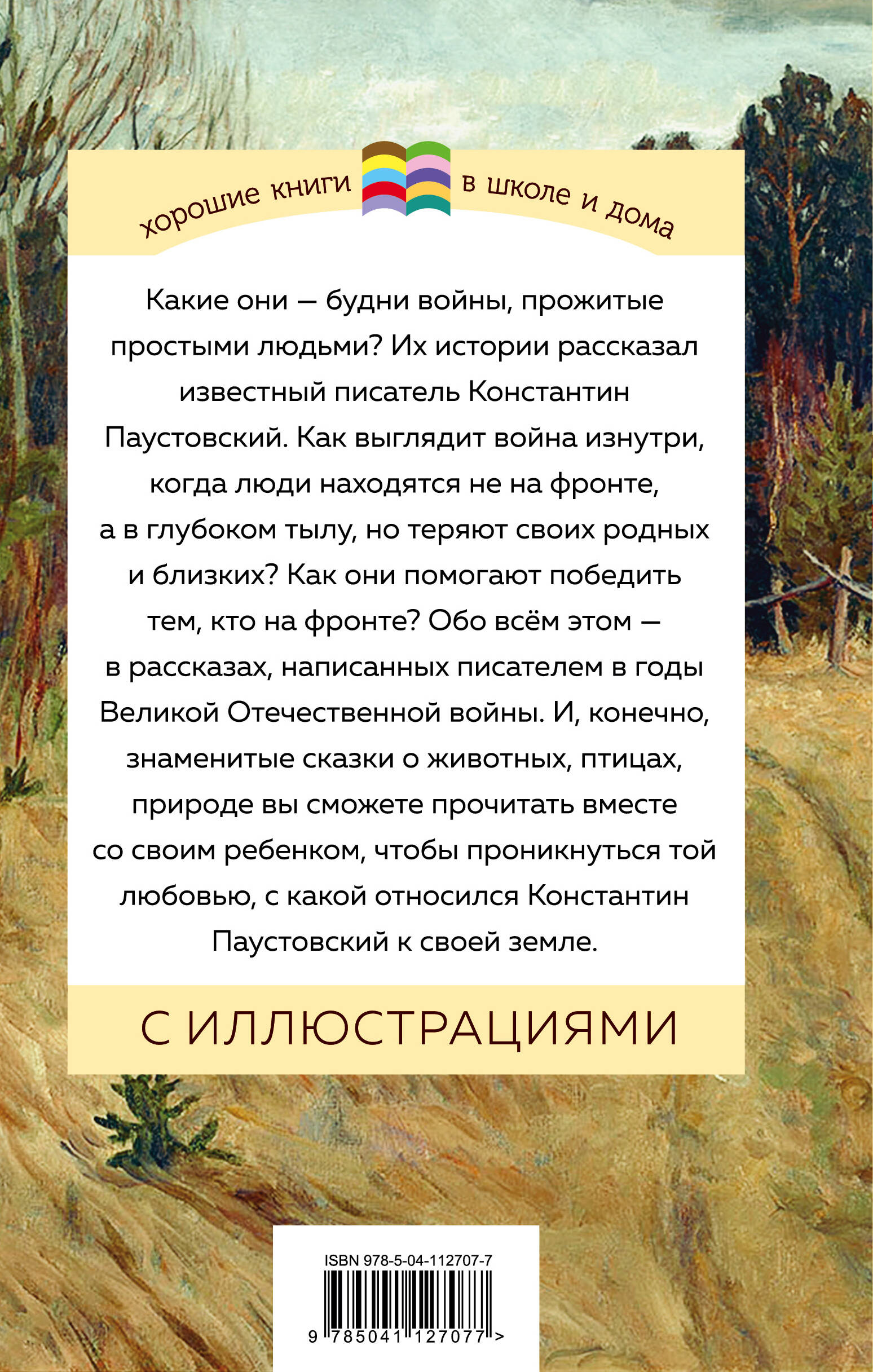 Какие они - будни войны, прожитые простыми людьми? Их истории рассказал известный писатель Константин Паустовский. Как выглядит война изнутри, когда люди находятся не на фронте, а в глубоком тылу, но теряют своих родных и близких? Как они помогают победить тем, кто на фронте? Обо всем этом в рассказах, написанных писателем в годы Великой Отечественной войны. И, конечно, знаменитые сказки о животных, птицах, природе вы сможете прочитать вместе со своим ребенком, чтобы проникнуться той любовью, с какой относился Константин Паустовский к своей земле. В книгу включены сказки и рассказы о войне К. Г. Паустовского, которые рекомендовано читать в 5-11 классах.| Издательство | ООО "Издательство "Эксмо" |
