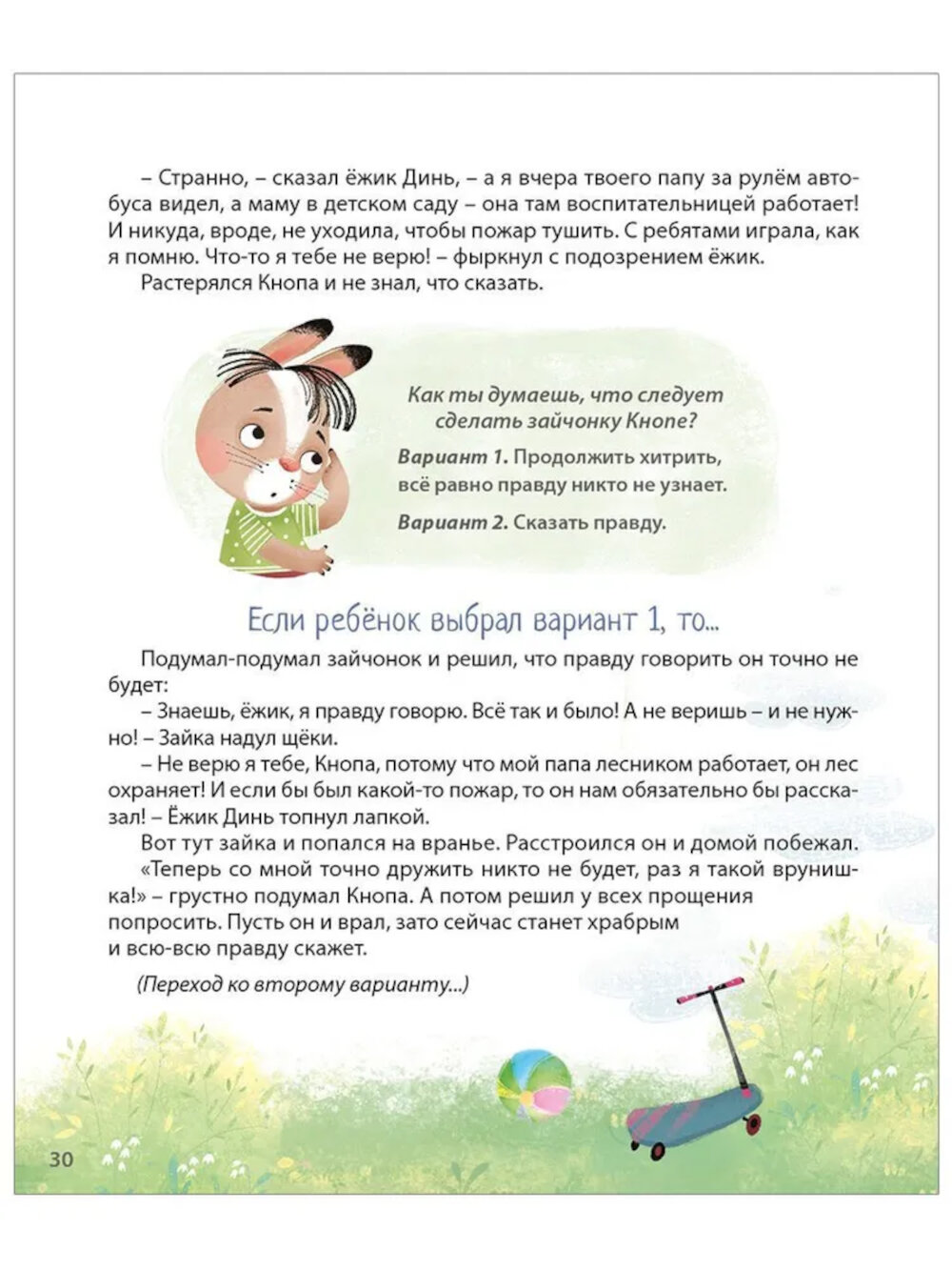 У ваших детей есть чудесная возможность научиться делать правильный выбор. Сказки будут помогать им правильно размышлять: ставить в сложные, но реальные ситуации, в которых нужно думать, отвечая на вопрос: «А как бы ты поступил?» Сказочный герой, находящийся в трудной ситуации, получает опыт, а ваш ребёнок понимает, как эти знания применять в реальной жизни.| Издательство | Робинс |