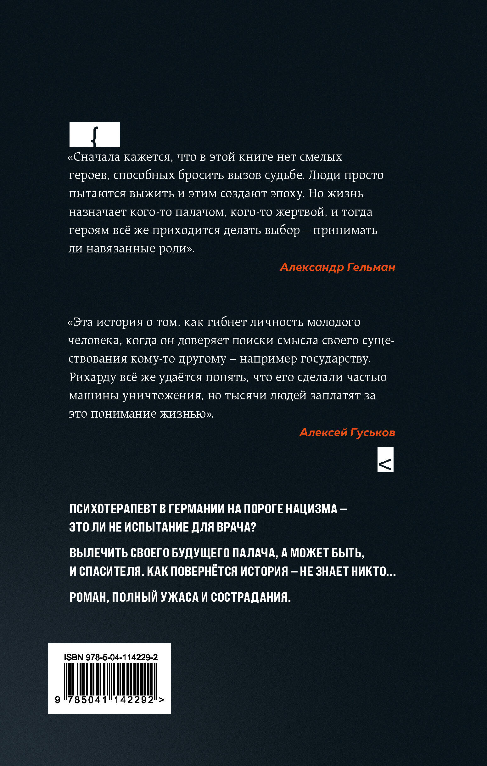 Эдуард Резник родился в 1960 году. Закончил сценарный факультет ВГИКа. Автор более 20 телесериалов, фильмов, театральных пьес, поставленных в России, Германии, Израиле, США. Киносценарий по роману «Терапия» отмечен наградами на международных кинофестивалях в Амстердаме, Лос-Анджелесе, Чикаго, Берлине, Тель-Авиве. Владимир Мирзоев (режиссер): «"Терапия" Эдварда Резника - фрейдистский роман о Холокосте, написанный профессиональным психоаналитиком. Гениальная, стилистически безупречная проза, где реализм и символизм рождают удивительно глубокий, чувственный и бесстрашный текст». Александр Гельман (драматург): «Сначала кажется, что в этой книге нет смелых героев, способных бросить вызов судьбе. Люди просто пытаются выжить, и этим создают эпоху. Но жизнь назначает кого-то палачом, кого-то жертвой, и тогда героям всё же приходится делать выбор - принимать ли навязанные роли». Алексей Гуськов (актер, продюсер): «Эта история о том, как гибнет личность молодого человека, когда он доверяет поиски смысла своего существования кому-то другому - например, государству. Рихарду всё же удаётся понять, что его сделали частью машины уничтожения, но тысячи людей заплатят за это понимание жизнями».| Издательство | Эксмо |