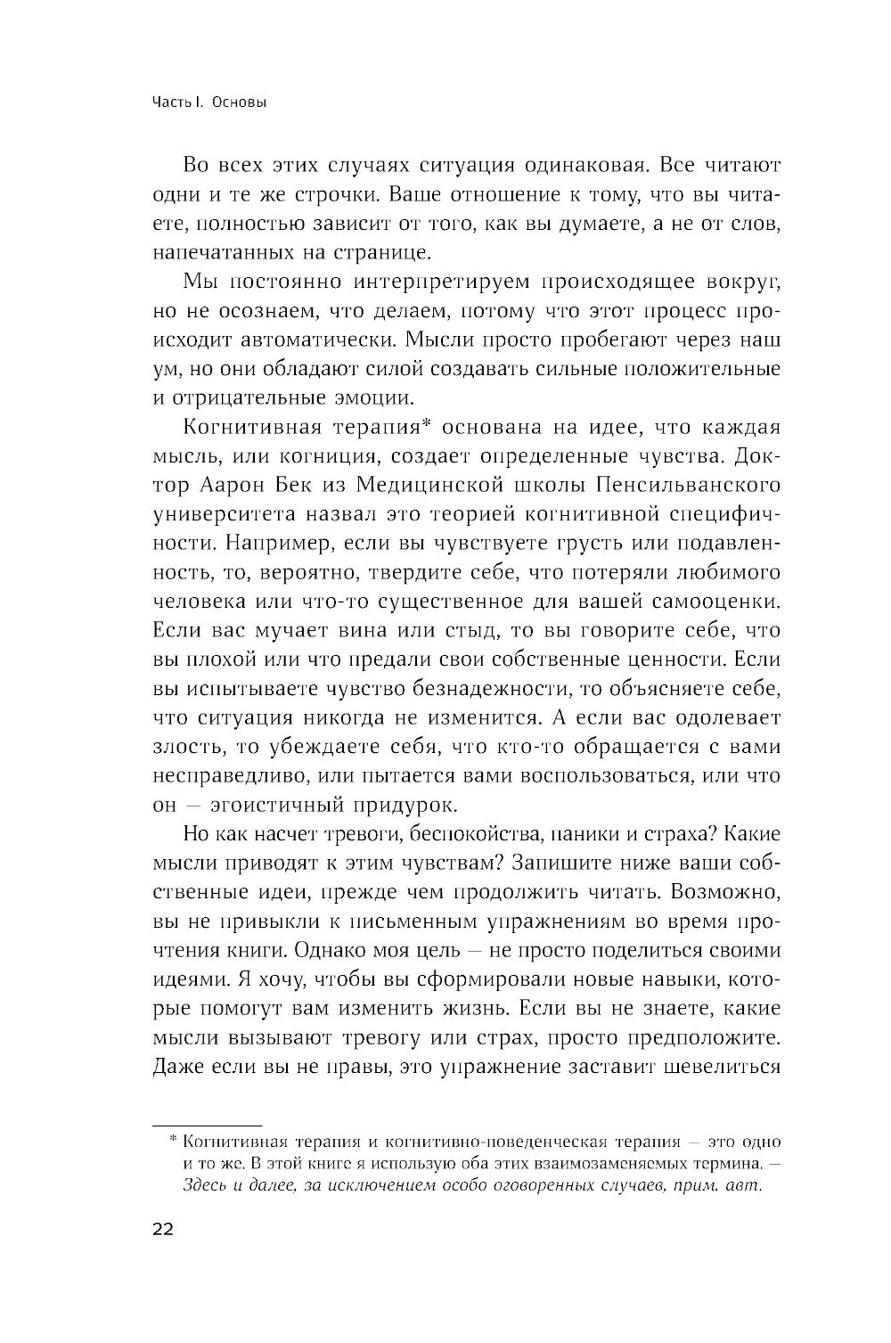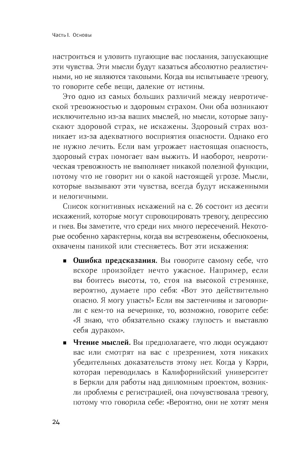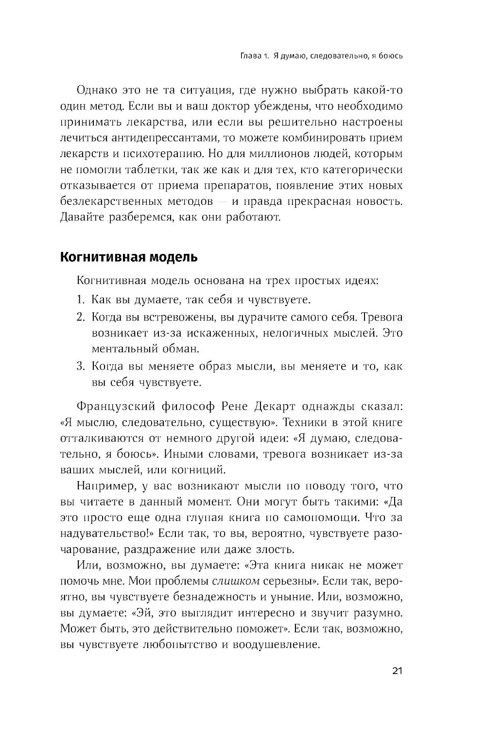 Вы переживаете, что излишне застенчивы или постоянно во всем сомневаетесь? Вы не можете нормально спать, беспокоясь о своей работе, здоровье или отношениях? Вас мучает страх высоты или начинается паническая атака, когда садитесь за руль автомобиля? Дело в том, что в основе тревожных состояний лежат иррациональные убеждения, которые делают вас уязвимым и способны привести к депрессии, утверждает психотерапевт Дэвид Бернс, автор международного бестселлера «Терапия настроения» и один из основоположников когнитивно-поведенческой терапии. В своей новой книге он предлагает 40 простых и эффективных техник, которые помогут вам разобраться в причинах ваших тревог, справиться с негативными мыслями и преодолеть свои страхи. Доктор Бернс также делится результатами исследований лекарств, обычно назначаемых при депрессии, и объясняет, почему они иногда могут принести больше вреда, чем пользы.| Издательство | Альпина Паблишер |