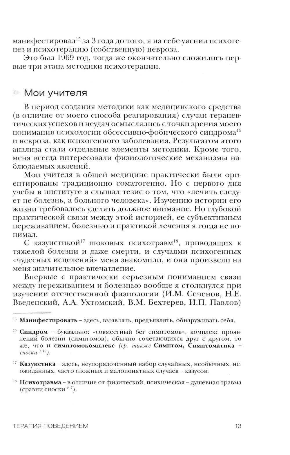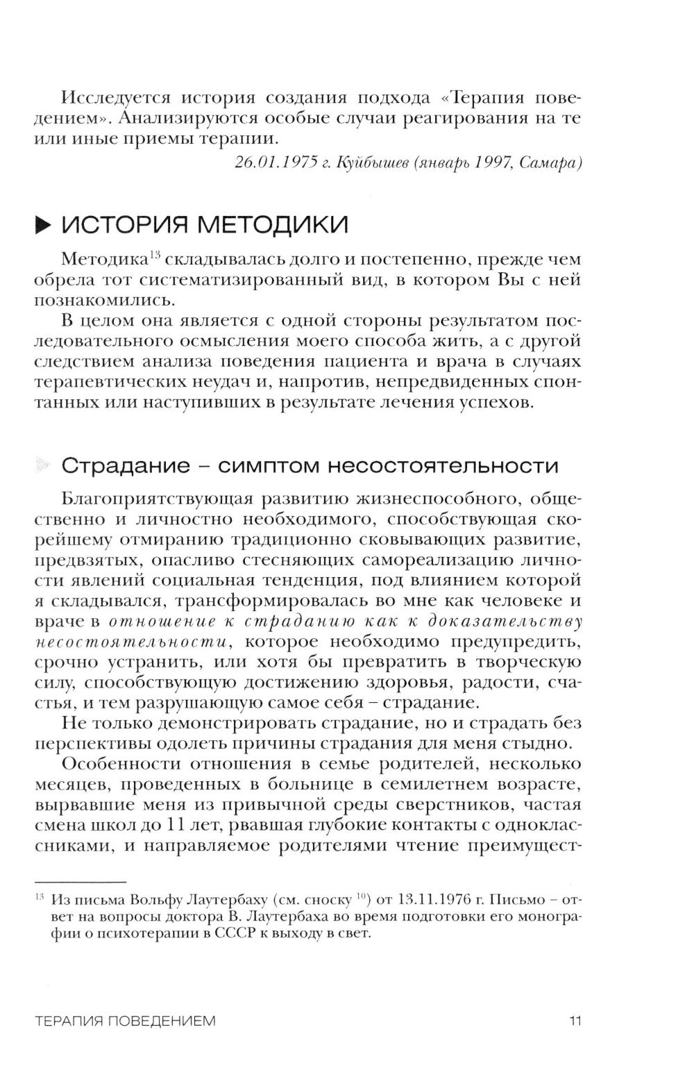 Новое издание «Терапии поведением» не просто «исправленное и дополненное», книга фактически написана заново, а ее объем вырос вдвое. Это последовательное изложение уникального авторского метода терапии расстройств личности и поведения. Адресованная специалистам (врачам, психотерапевтам, психологам, социальным работникам), книга содержит как теоретические основы психогенеза неврозов, психосоматических нарушений и личностных конфликтов, так и непосредственный опыт работы врача-психотерапевта и психиатра с пациентами, опыт исцеления, основанный на пристальном внимании автора " к субъективному в себе и в других«. Широкому кругу читателей книга предоставляет не только возможность знакомства с психотерапевтической «доктриной» автора, где нравственный, личностный выбор и смысл - не абстрактные категории, а необходимые условия здорового и счастливого бытия отдельного человека и его окружения, но и возможность найти способы и пути практического решения своих личностных проблем.| Издательство | БахраХ-М |