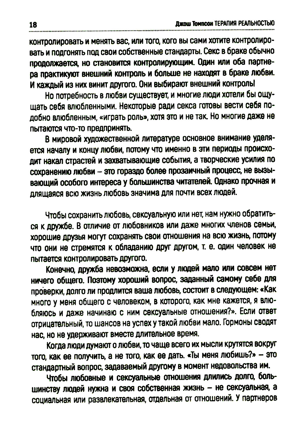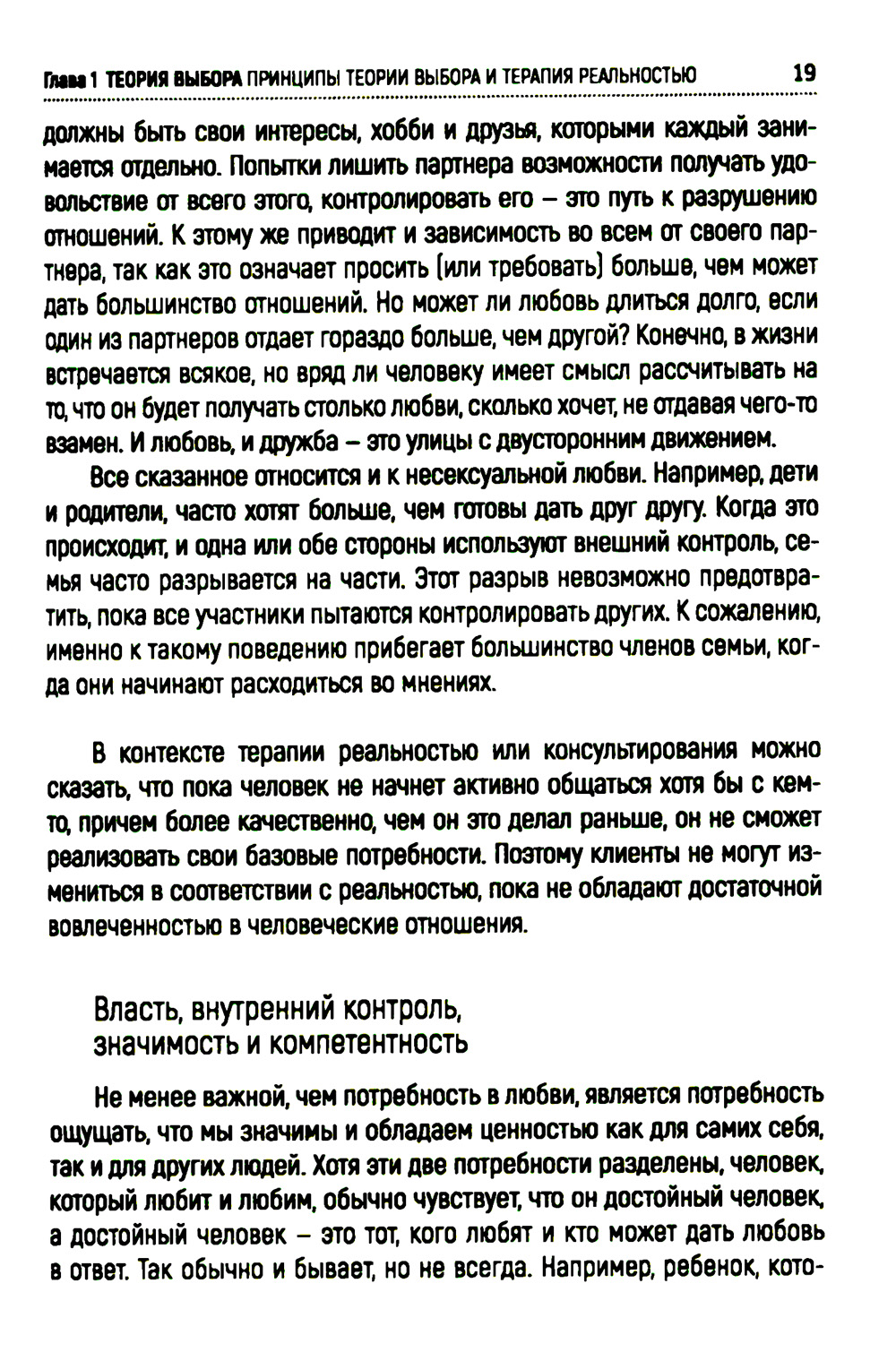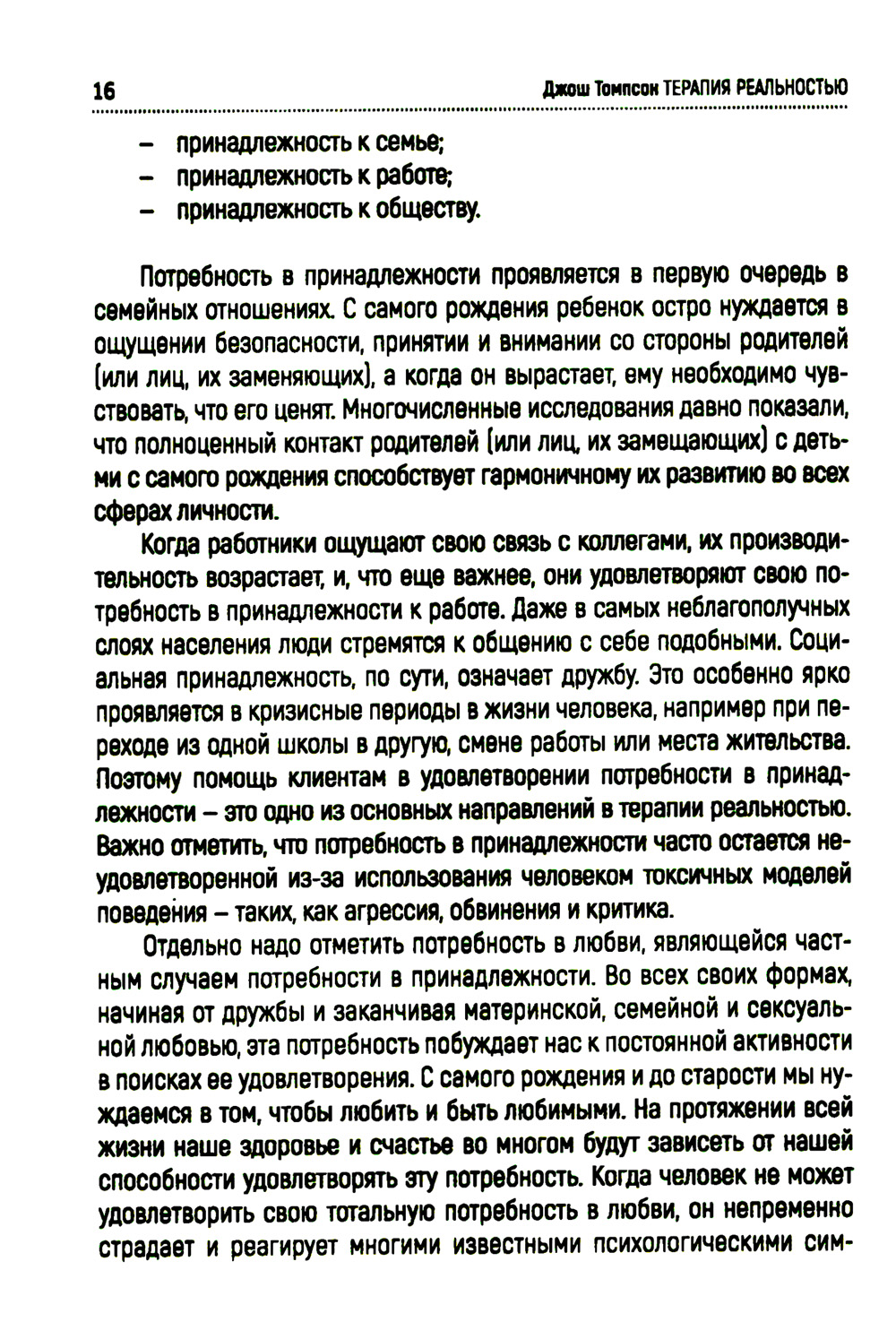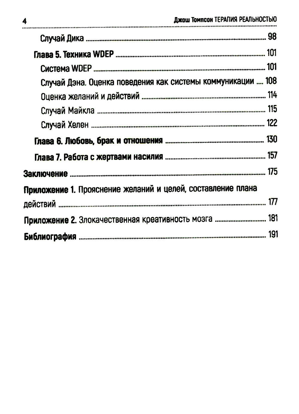 Терапия реальностью основана на теории выбора Уильяма Глассера. Основной акцент в ней делается на том, что человек способен контролировать, т. е. на его действиях и мыслях. В результате это приводит к позитивным изменениям в его эмоциях и чувствах, а также во взаимоотношениях с другими людьми. В книге приводится много примеров конкретных диалогов, иллюстрирующих взаимодействие между специалистом и клиентом и разнообразные терапевтические интервенции (воздействия). Книга написана для консультантов, терапевтов и других представителей помогающих профессий. Она практична и будет полезна консультантам и психотерапевтам, работающим в различных направлениях, а также тем людям, которые самостоятельно ищут способы справиться с неудовлетворяющими их отношениями и личными проблемами.| Издательство | Изд.Базенков И.Л. |