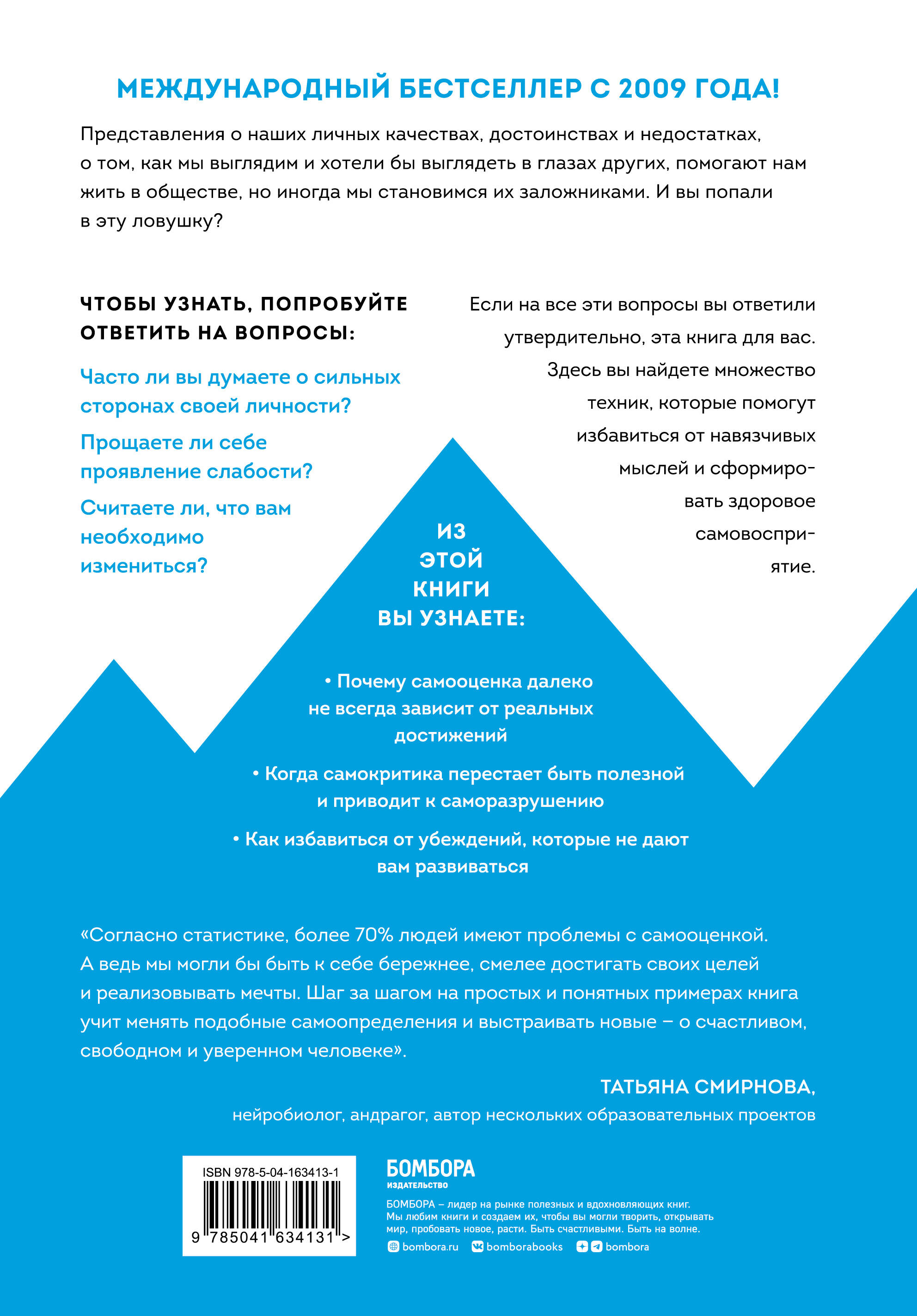 Представления о наших качествах характера, достоинствах и недостатках, о том, как мы выглядим и хотели бы выглядеть в глазах других, помогают нам жить в обществе, но иногда мы становимся их заложниками. Не попали ли вы в эту ловушку? Чтобы узнать, попробуйте ответить на вопросы: - Часто ли вы думаете о сильных сторонах своей личности? - Прощаете ли себе проявление слабости? - Считаете ли, что вам необходимо измениться? Если на все эти вопросы вы ответили утвердительно, эта книга для вас. В ней вы найдете множество техник для самоанализа и самонаблюдения, основанных на принципах когнитивной терапии, которые помогут избавиться от навязчивых мыслей, сформировать здоровое самовосприятие и обрести уверенность в своих силах. Здесь вы найдете ответы на вопросы: - Почему самооценка далеко не всегда зависит от реальных достижений? - Когда самокритика перестает быть полезной и приводит к саморазрушению? - Как избавиться от убеждений, которые не дают вам развиваться? - С какими последствиями можно столкнуться, если не работать над самооценкой?