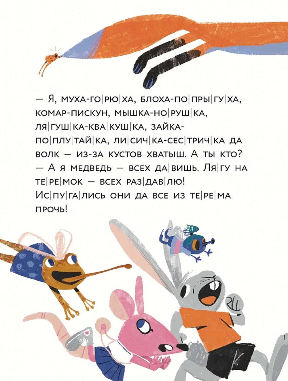 Это сказка о том, как в маленьком теремке поселились самые разные животные: муха, блоха, комар, мышка, зайчик, лягушка и даже лиса с волком. И жили они дружно и весело, пока не пришёл медведь...| Издательство | Альпина Паблишер |
