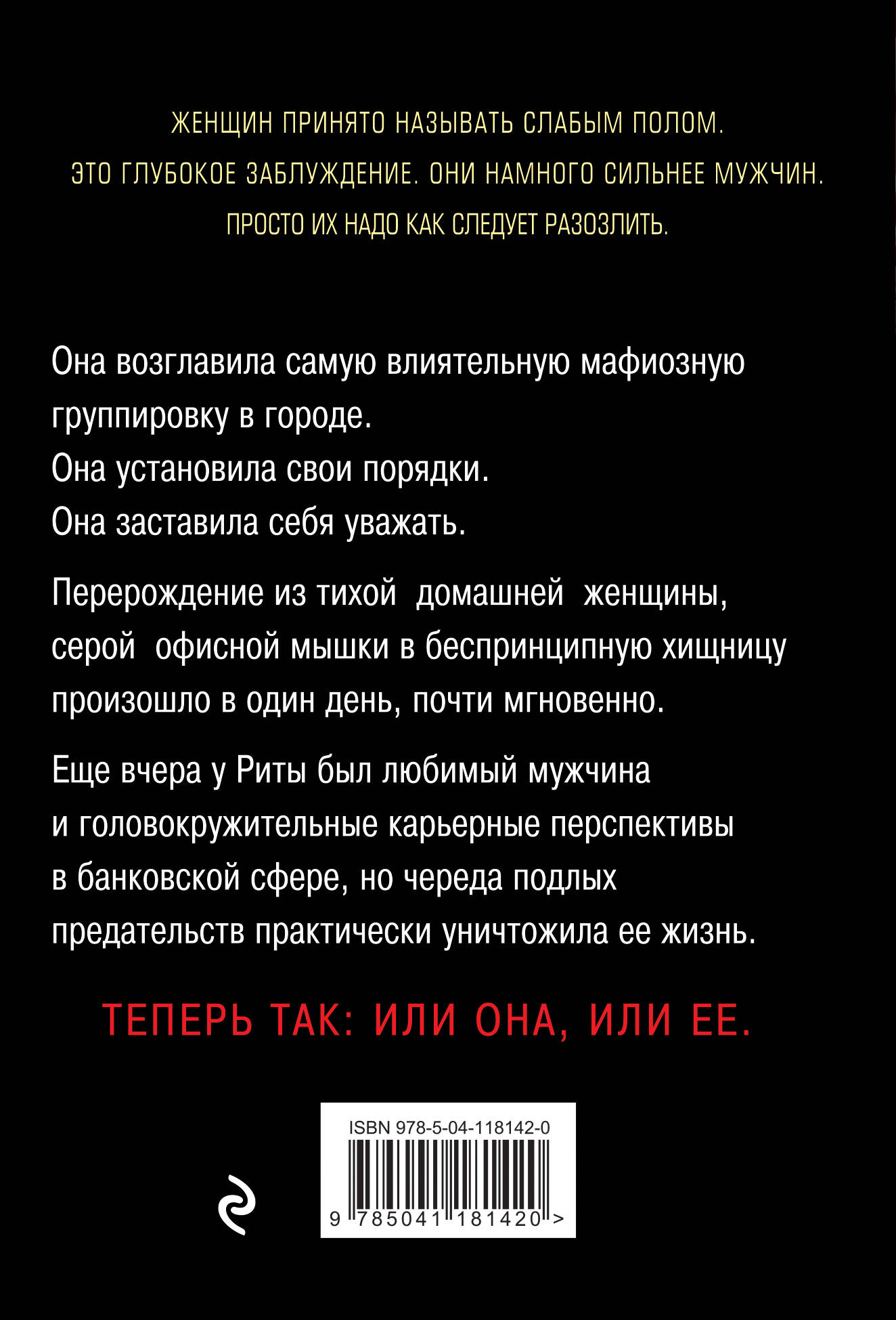 Серия детективных романов о простой одинокой женщине, которой в один прекрасный момент надоело быть слабой. Женщин принято называть слабым полом. Новый роман Татьяны Чистовой опровергает это. Женщины бывают очень сильными. Они ставят перед собой головокружительные цели и добиваются их. Даже брутальные мужчины пасуют перед ними. Но есть одно условие. Женщину надо очень сильно разозлить. Она возглавила самую влиятельную мафиозную группировку в городе. Она установила свои порядки. Она заставила себя уважать. Перерождение из тихой домашней женщины, серой офисной мышки в беспринципную хищницу произошло в один день, почти мгновенно. Еще вчера у Риты был любимый мужчина и головокружительные карьерные перспективы в банковской сфере, но череда подлых предательств практически уничтожила ее жизнь. Теперь так: или она или ее!| Издательство | ООО "Издательство "Эксмо" |