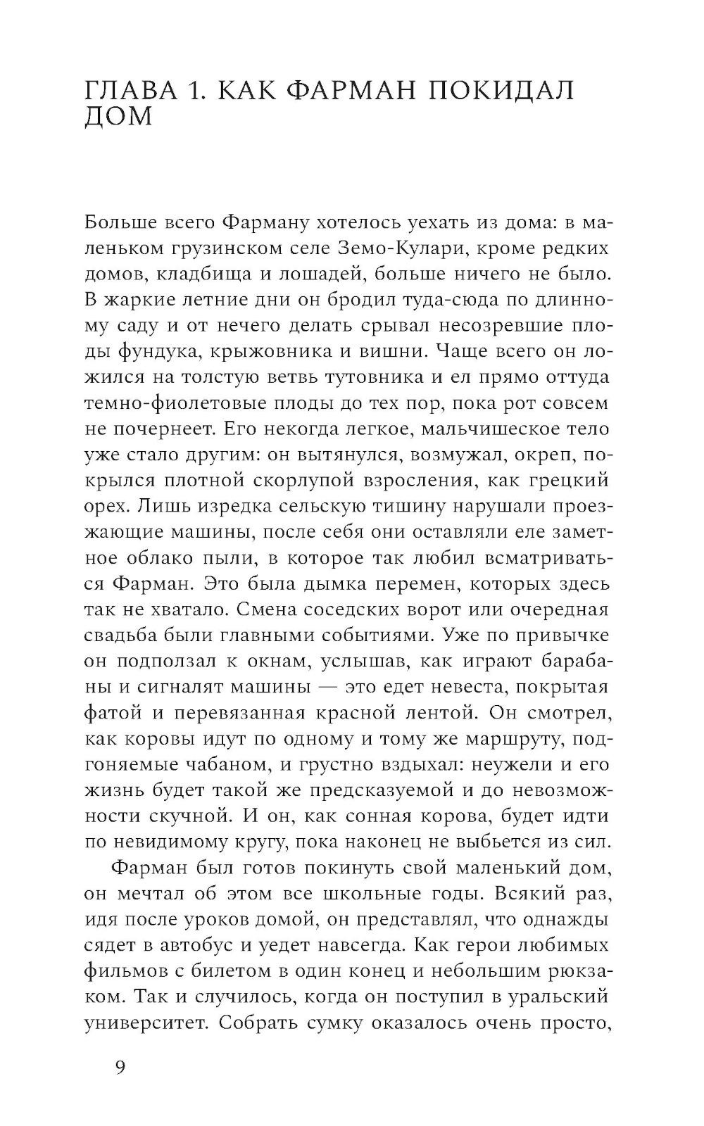 «Каждую ночь мне снится этот момент: я оборачиваюсь - и передо мной книжный шкаф, рядом старинное трюмо с зеркалом, словно изнутри покрывшимся туманом, я не пытаюсь попрощаться с домом, потому что не понимаю, что ухожу навсегда». 1980-е: герой переезжает в Екатеринбург из родового гнезда в грузинском селе и становится на новом месте предприимчивым авантюристом. Наше время: героиня вынуждена уехать из родной страны - там распространяется вирус, который отключает участок мозга, отвечающий за эмпатию. Новый роман Е. Джаббаровой - это ветвящийся текст, где сюжетные линии только поначалу кажутся несвязанными, но в конце концов сходятся воедино. Что значит обрести дом и что значит его потерять? Как складывается семейная история? Что заставляет людей ощущать близость и родство друг с другом? Задаваясь этими вопросами, герои находятся в постоянном интенсивном движении - в отчаянной попытке спастись от тех сил, что стремятся отнять у человека его неповторимость. Егана Джаббарова - прозаик, поэтесса, эссеист, автор книг «Руки женщин моей семьи были не для письма», «Красная кнопка тревоги», «Босфор», «Поза Ромберга» и «Дуа за неверного».| Издательство | Новое литературное обозрение |