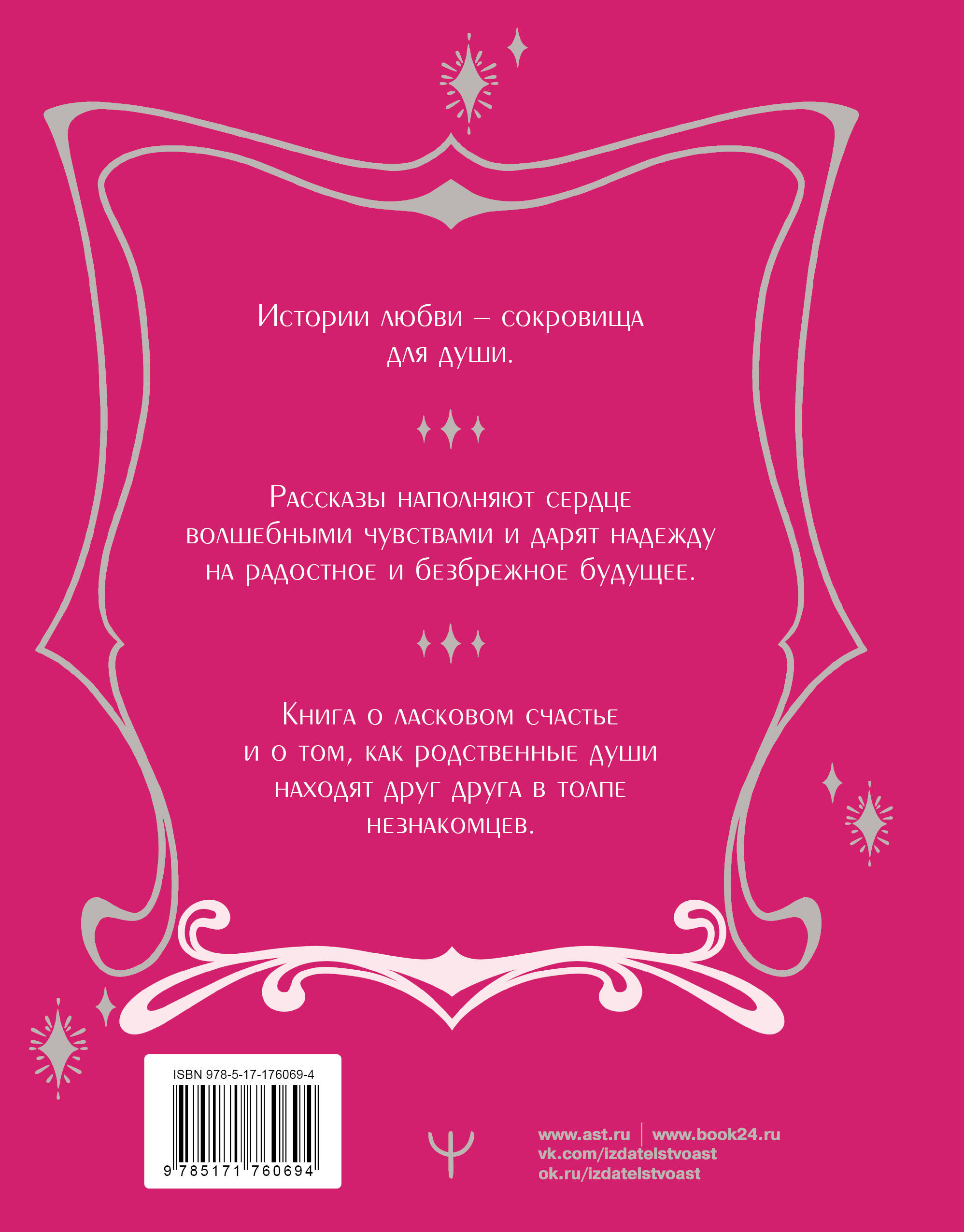 Большой подарочный сборник рассказов о любви, покоривших сердца более миллиона читателей! Истории о том, как нити совершенно разных судеб завязываются в крепкие узелки, дарят надежду встретить искреннюю безусловную любовь. Эта книга согреет душу и сделает мир вокруг прекраснее, ведь в ней собраны самые трогательные и добрые сюжеты. Вы сможете увидеть новые грани отношений, в которых находитесь, раскрасить мир яркими цветами и нарисовать собственное счастье. Вы узнаете, как потерявшиеся на городских улицах кошка и собака растопили лед между двумя очерствевшими сердцами. Познакомитесь с семейными легендами о встречах с самой судьбой и услышите громкий шепот влюбленных сердец. Каждая история любви на этих страницах отзовется приятным волнением в душе, а от некоторых появятся мурашки.| Издательство | Издательство "АСТ" |