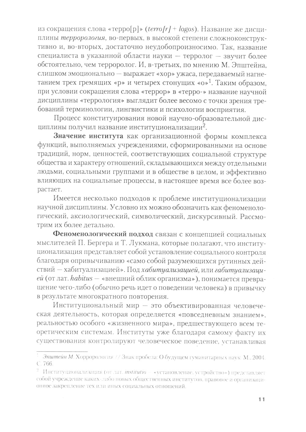 Разработано основание учебной дисциплины, посвященной исследованию современного терроризма, изложено авторское видение террора как метода политического управления, раскрыты взаимосвязи террористической активности с глобализационными процессами, показан информационно-коммуникативный характер современного терроризма, обозначены направления антитеррористической борьбы научно-образовательного характера. Для студентов социально-гуманитарных направлений и специальностей, преподавателей высших учебных заведений по дисциплинам «Противодействие терроризму», «Национальная безопасность», «Безопасность жизнедеятельности», «Криминология», «Политология».| Издательство | КноРус |