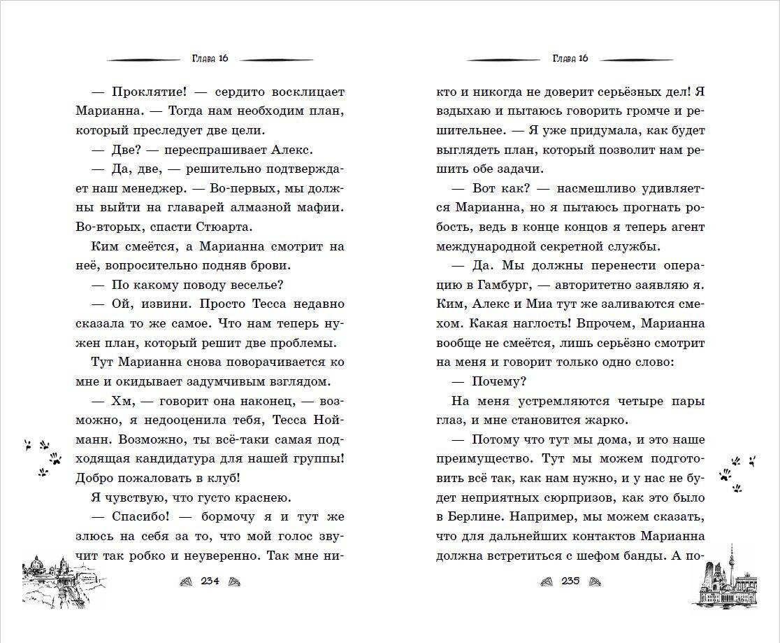 Гитаристка популярной группы становится спецагентом и раскрывает захватывающие дела вместе с ироничным мышонком! Первая книга в шпионской трилогии. Новая история и новые герои от автора бестселлера «Приключения кота-детектива» Фрауке Шойнеманн, который был продан в России тиражом более 1 млн экземпляров. Книга «Тесса. Совершенно секретно!» рассказывает не только о детективном расследовании, но и о настоящей дружбе и школьной влюблённости. Вас ждёт атмосферное чтение: необычный помощник главной героини - сообразительный мышонок, много юмора и неожиданных поворотов в сюжете. Яркое оформление: эффектная обложка, цветные форзацы, чёрно-белые виньетки внутри. Идеальный подарок для фанатов автора и поклонников серий «Детективное агентство Агаты» и «Холли Вебб. Мейзи Хитчинс. Приключения девочки-детектива». Крутой шпионский роман понравится детям от 10 лет!| Издательство | ООО "Издательство "Эксмо" |