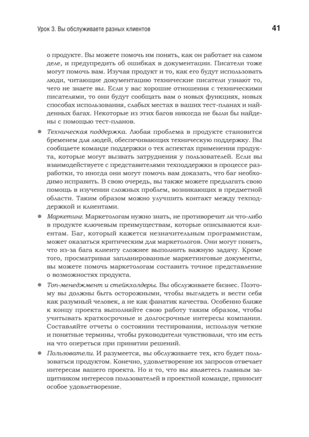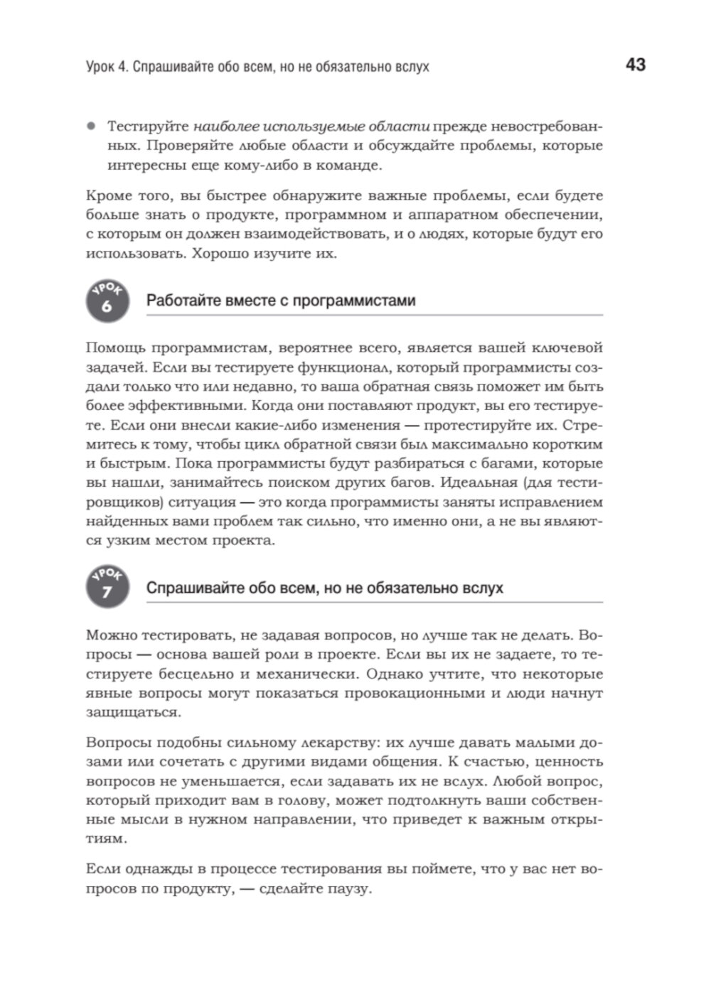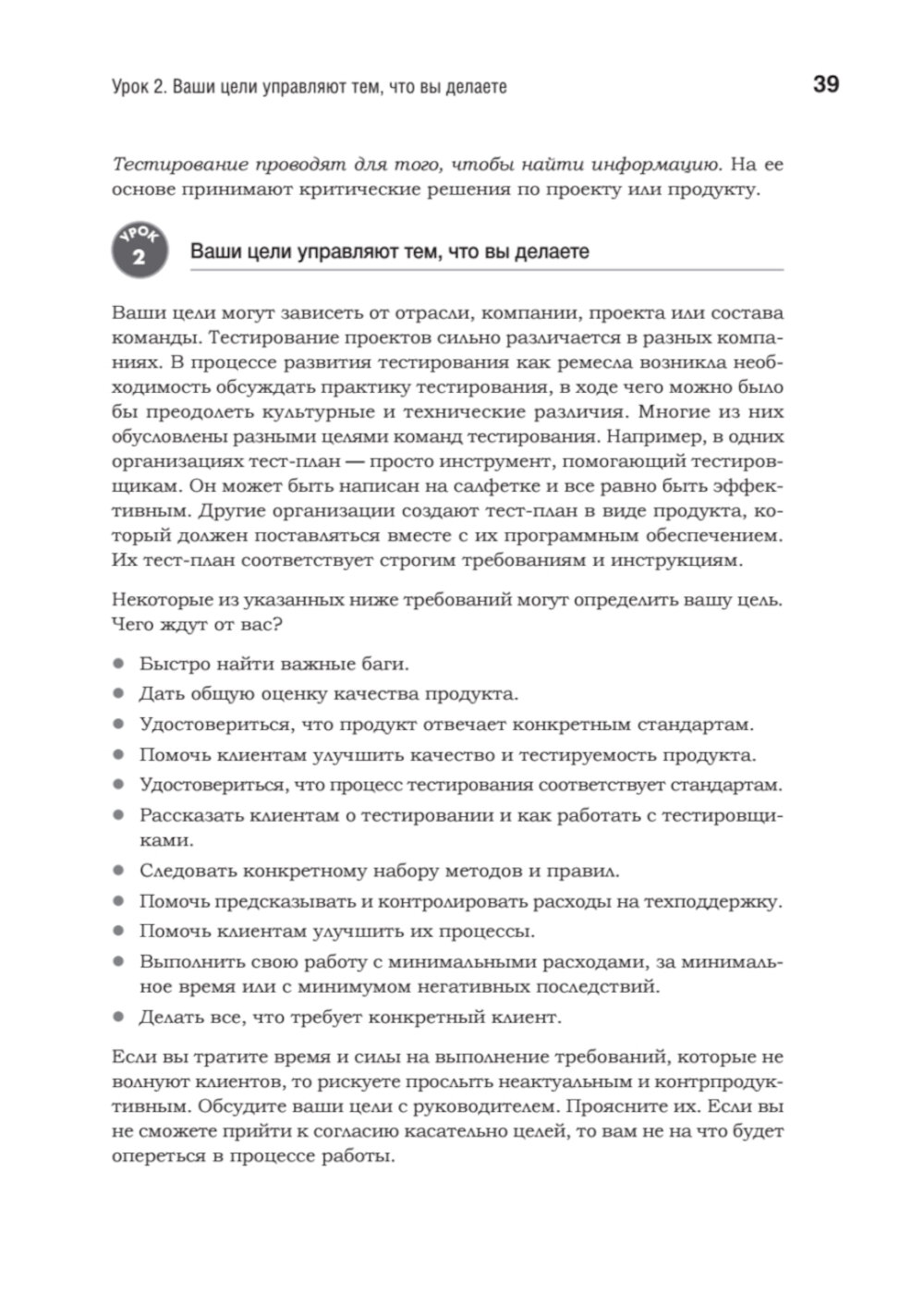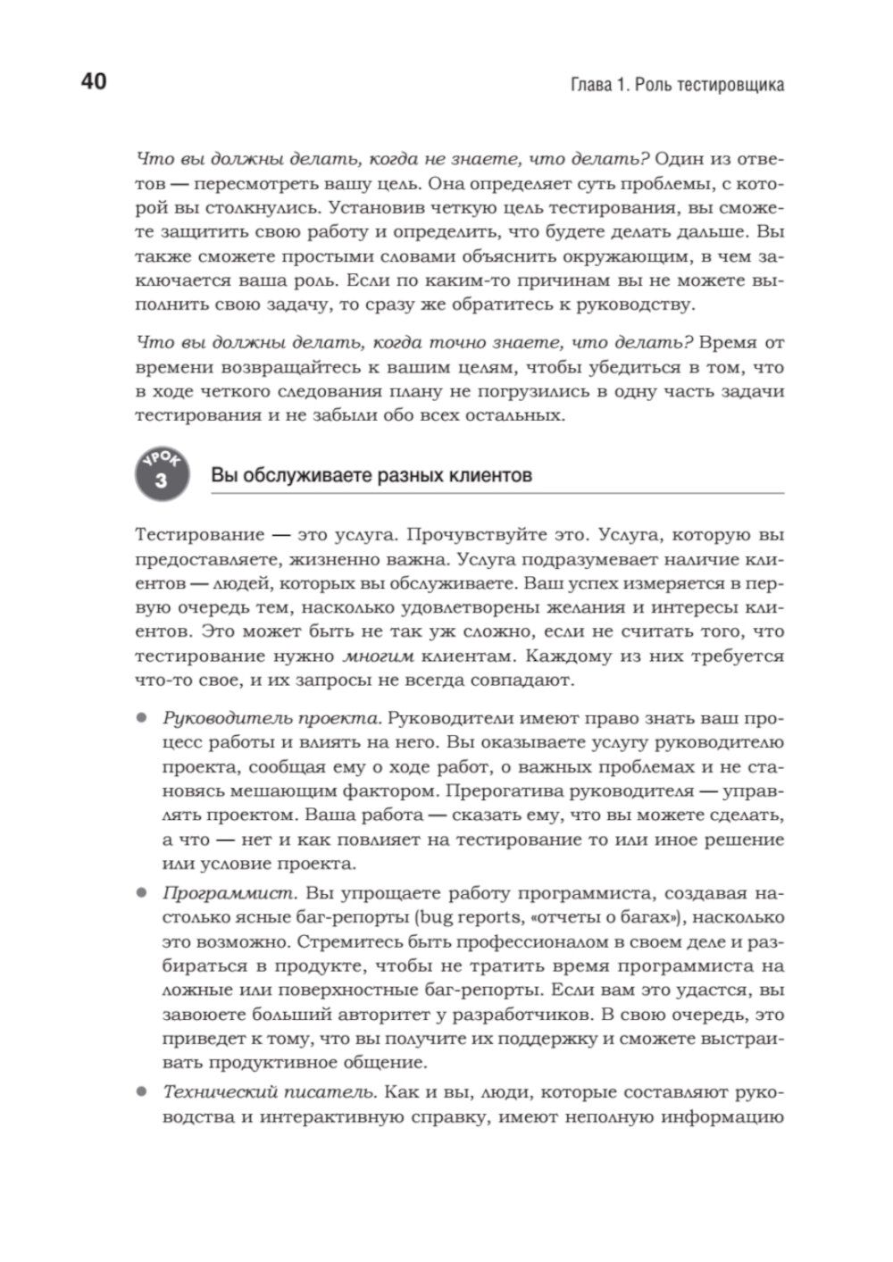 Хорошими тестировщиками не рождаются - ими становятся благодаря упорному труду и постоянному общению. На этом пути таится множество ловушек, способных сорвать самые смелые планы и привести к отставанию проектов от графика. Кем Кейнер, Джеймс Бах и Брет Петтикорд очень хорошо об этом знают. За их плечами более 50 лет опыта, и они понимают, что необходимо для достижения успеха в тестировании. Они собрали 293 проверенных совета, которые вы можете использовать в своих проектах. Каждый урок начинается с утверждения, относящегося к тестированию программного обеспечения, за которым следует объяснение или пример, показывающий, как, когда и почему применяется этот урок.| Издательство | Питер |