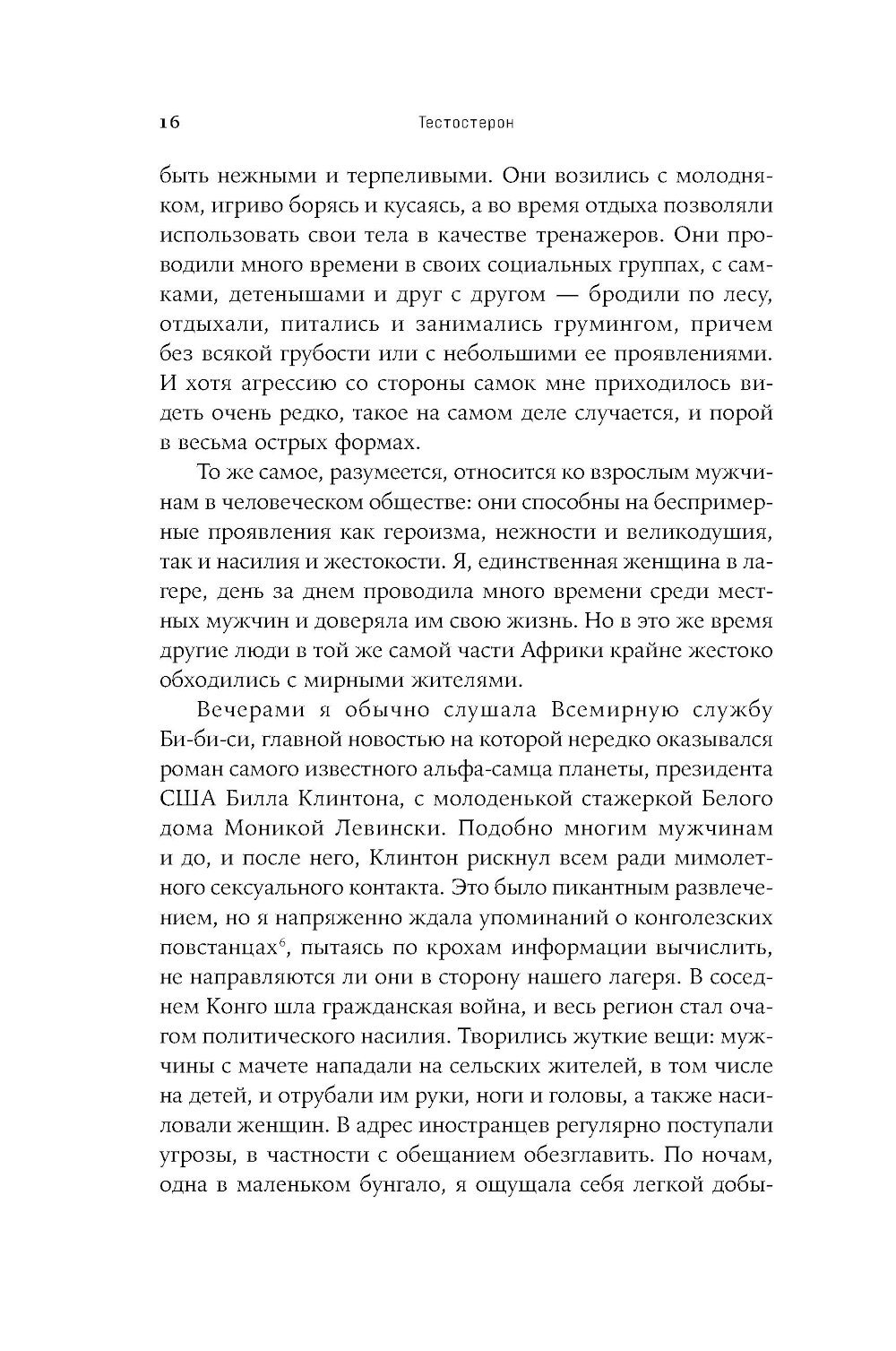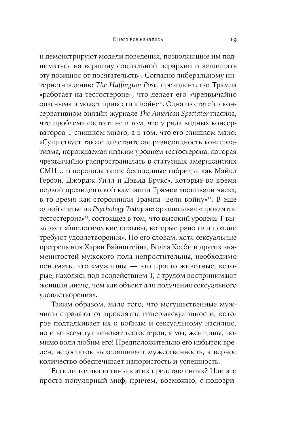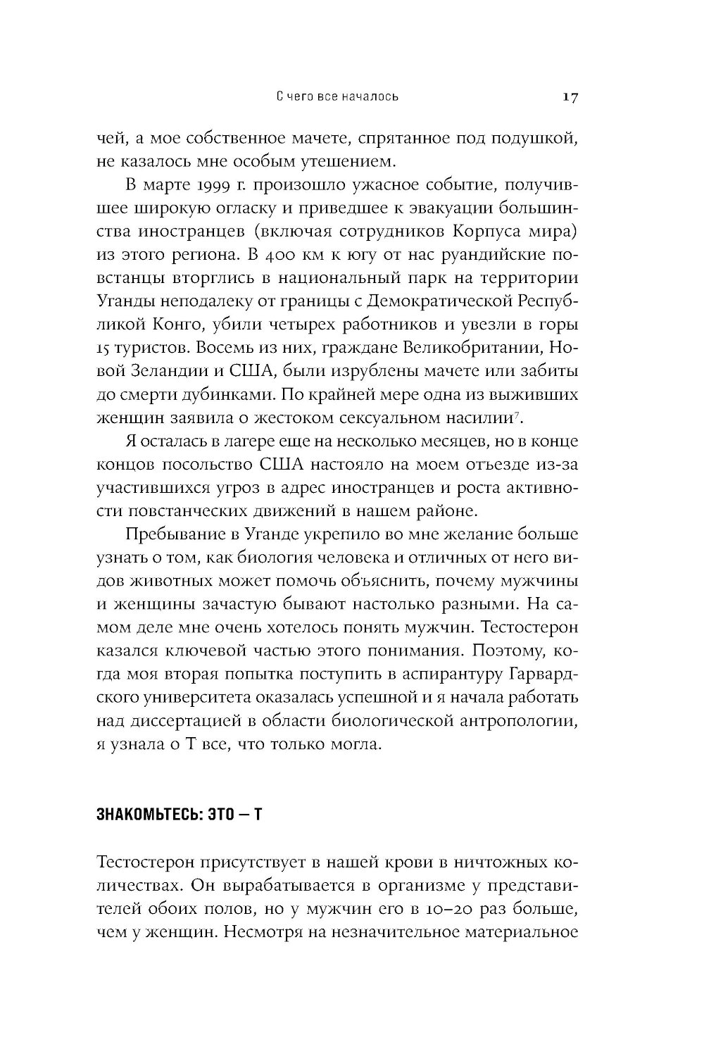 Наблюдая за холощеными самцами домашних животных, евнухами при императорских гаремах Древнего Китая и певцами-кастратами в Италии XVIII века, люди понимали, что типично мужские особенности физиологии и поведения определяются наличием семенников, иначе известных как яички. Со временем наука выяснила, что именно эти железы - основной источник тестостерона, главного мужского гормона. У кого больше кадык, ниже голос и волосатее грудь? У кого выше показатели физического насилия, острее стремление к привилегированному статусу и неутолимее желание иметь множество сексуальных партнеров? Просто следите за уровнем тестостерона. Хотя мы, люди, умеем изучать и оценивать свое поведение, мы также являемся животными, продуктами эволюции длительностью в миллионы лет. Поразительные исследования животных от игуан до шимпанзе показывают, как высокий уровень тестостерона помогает самцам производить потомство, обходя в этом своих конкурентов. И мужчины тут не исключение. Хотя большинство из нас согласны с тем, что половые различия в человеческом поведении объективно существуют, мы расходимся во мнениях относительно их причин. Но наука тут неумолима: тестостерон является мощной силой, действующей как в человеческом организме, так и в человеческом обществе, чтобы отделять мужской пол от женского. Однако, как доказывает в своей книге биолог-эволюционист из Гарварда Кэрол Хувен, он делает это совместно с генетикой и культурой, что создает огромное разнообразие мужского и женского поведения. И, что особенно важно, тот факт, что многие половые различия основаны на биологии, не означает оправданности ни ограничительных гендерных норм, ни патриархальных ценностей. Поняв механику работы тестостерона, мы лучше поймем самих себя и друг друга, а также то, как нам построить более справедливое и безопасное общество.| Издательство | Альпина нон-фикшн |