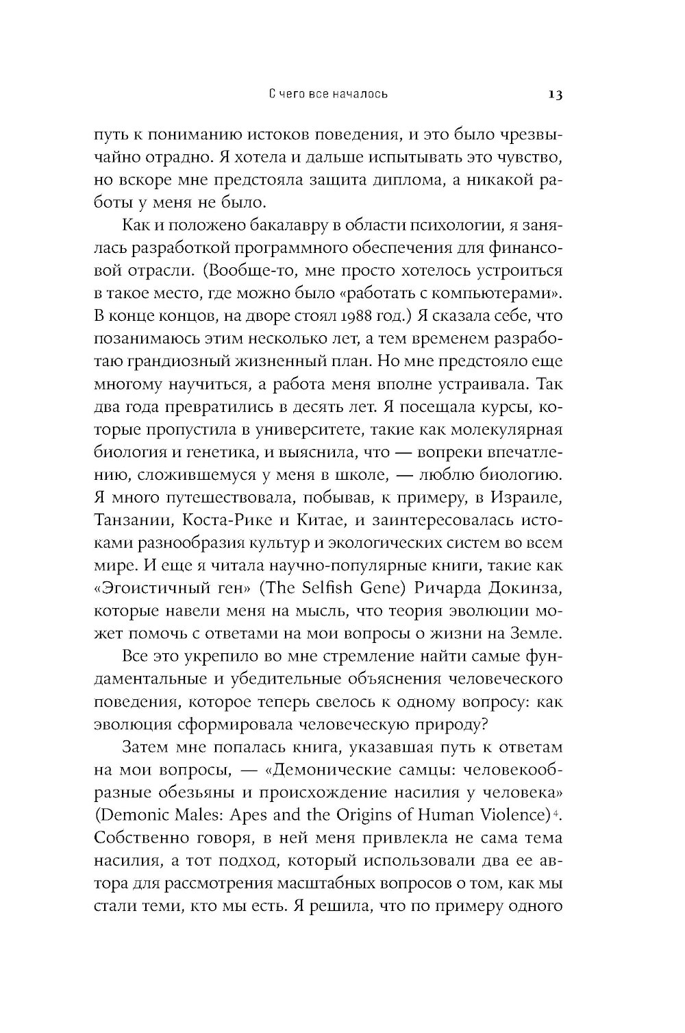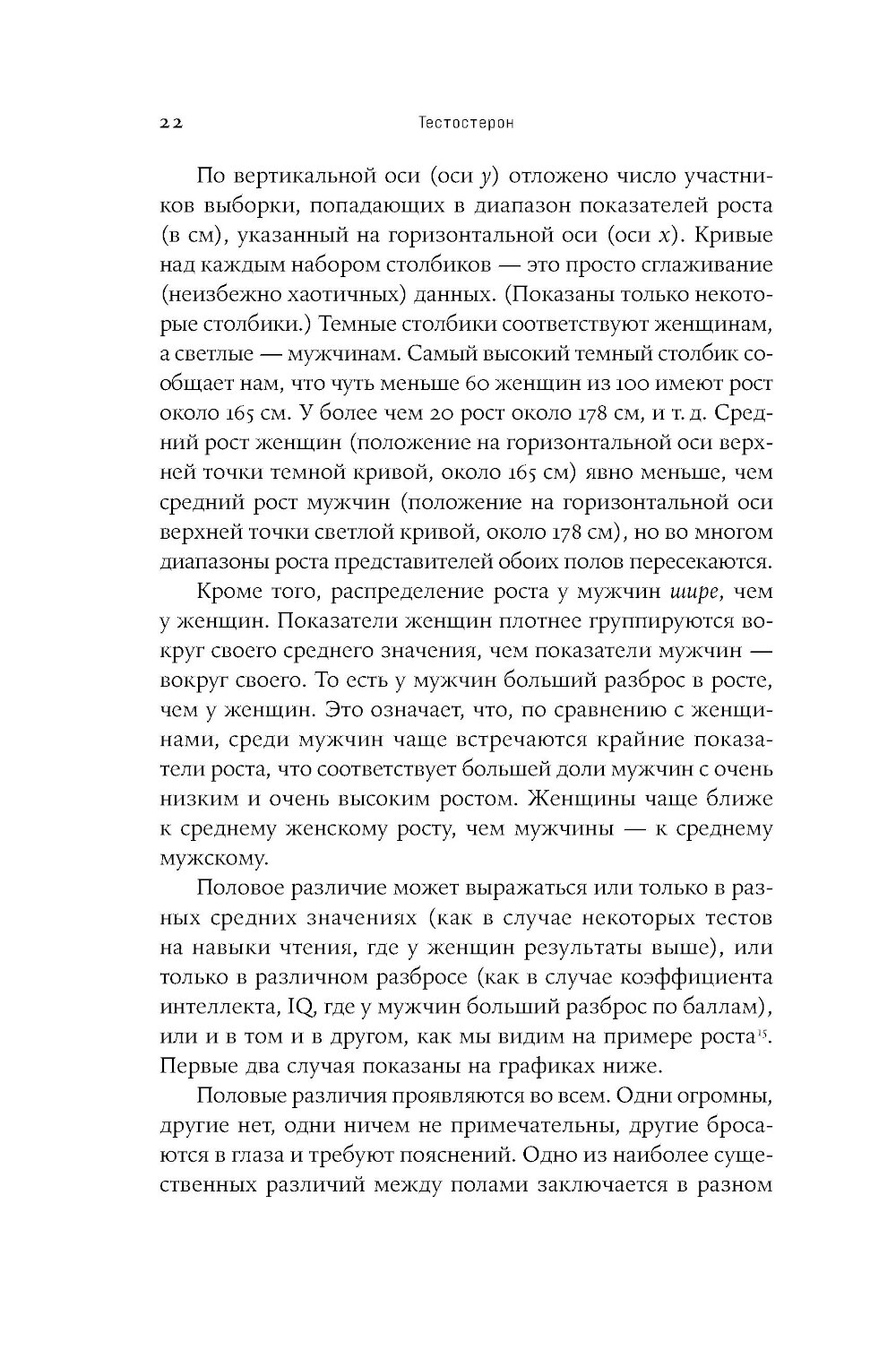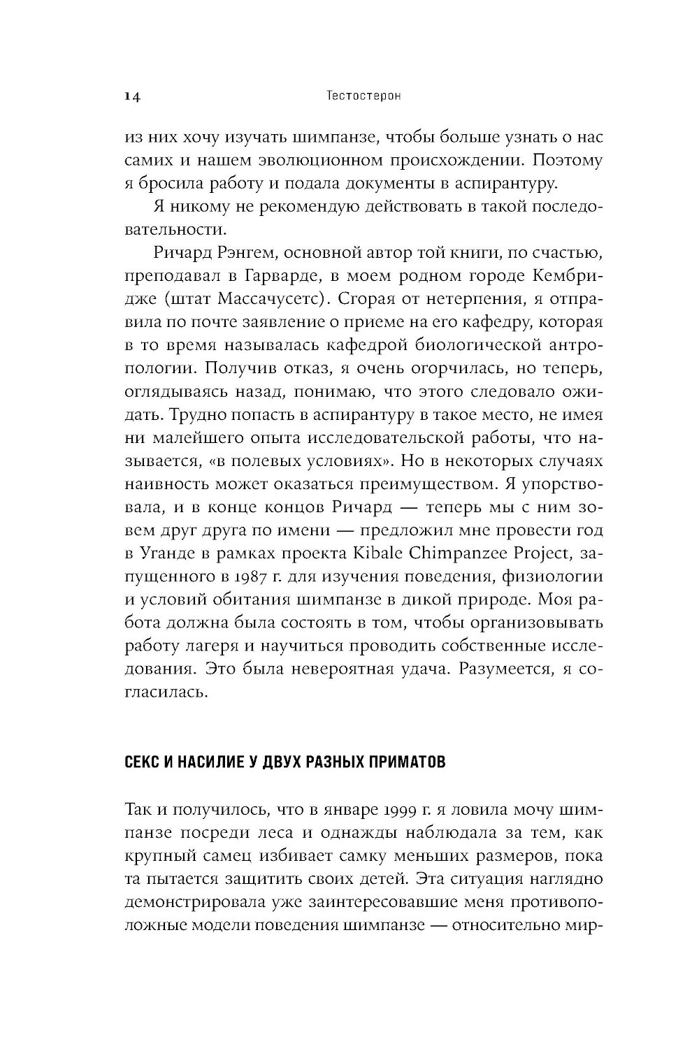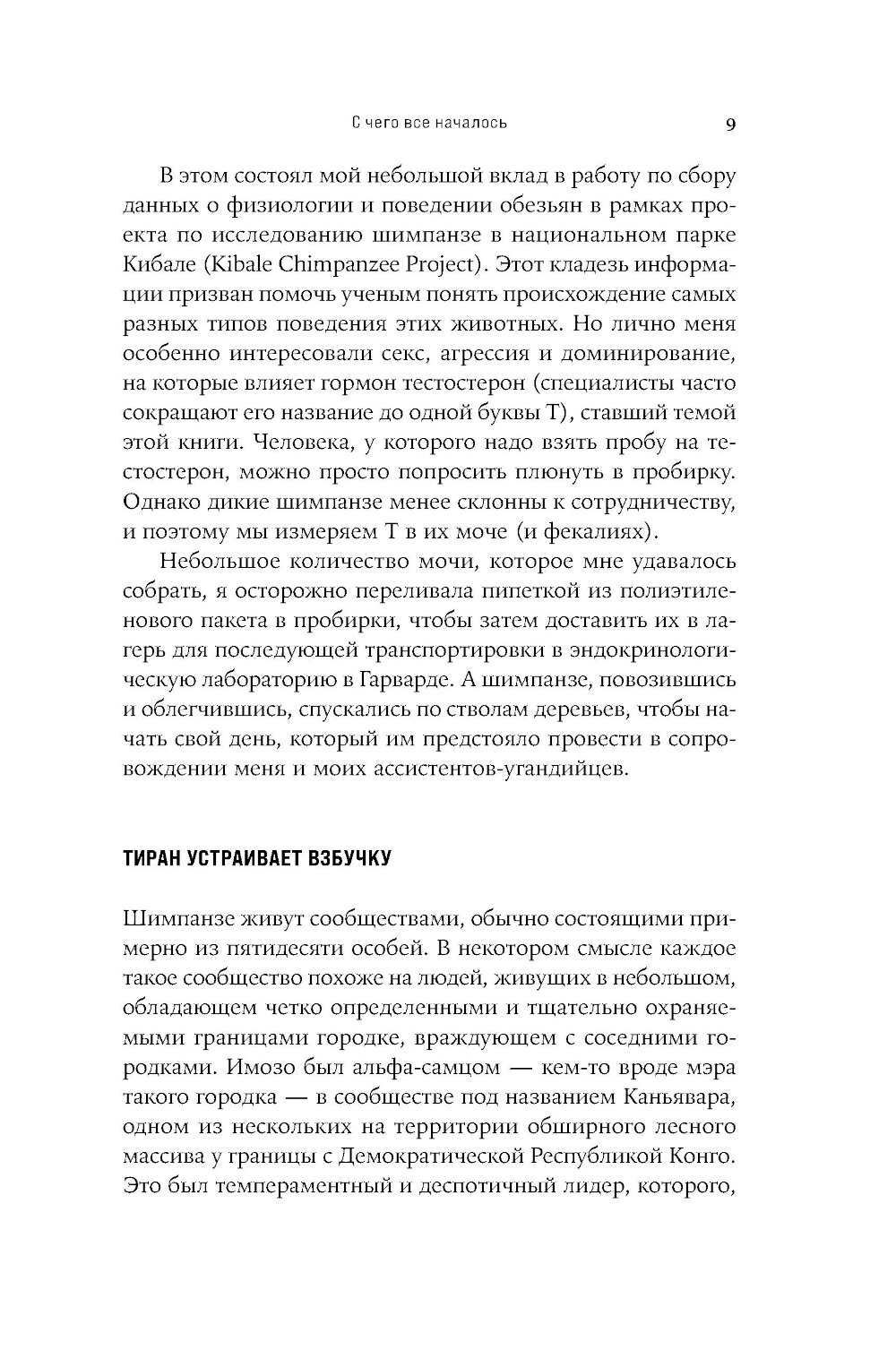 Наблюдая за холощеными самцами домашних животных, евнухами при императорских гаремах Древнего Китая и певцами-кастратами в Италии XVIII века, люди понимали, что типично мужские особенности физиологии и поведения определяются наличием семенников, иначе известных как яички. Со временем наука выяснила, что именно эти железы - основной источник тестостерона, главного мужского гормона. У кого больше кадык, ниже голос и волосатее грудь? У кого выше показатели физического насилия, острее стремление к привилегированному статусу и неутолимее желание иметь множество сексуальных партнеров? Просто следите за уровнем тестостерона. Хотя мы, люди, умеем изучать и оценивать свое поведение, мы также являемся животными, продуктами эволюции длительностью в миллионы лет. Поразительные исследования животных от игуан до шимпанзе показывают, как высокий уровень тестостерона помогает самцам производить потомство, обходя в этом своих конкурентов. И мужчины тут не исключение. Хотя большинство из нас согласны с тем, что половые различия в человеческом поведении объективно существуют, мы расходимся во мнениях относительно их причин. Но наука тут неумолима: тестостерон является мощной силой, действующей как в человеческом организме, так и в человеческом обществе, чтобы отделять мужской пол от женского. Однако, как доказывает в своей книге биолог-эволюционист из Гарварда Кэрол Хувен, он делает это совместно с генетикой и культурой, что создает огромное разнообразие мужского и женского поведения. И, что особенно важно, тот факт, что многие половые различия основаны на биологии, не означает оправданности ни ограничительных гендерных норм, ни патриархальных ценностей. Поняв механику работы тестостерона, мы лучше поймем самих себя и друг друга, а также то, как нам построить более справедливое и безопасное общество.| Издательство | Альпина нон-фикшн |