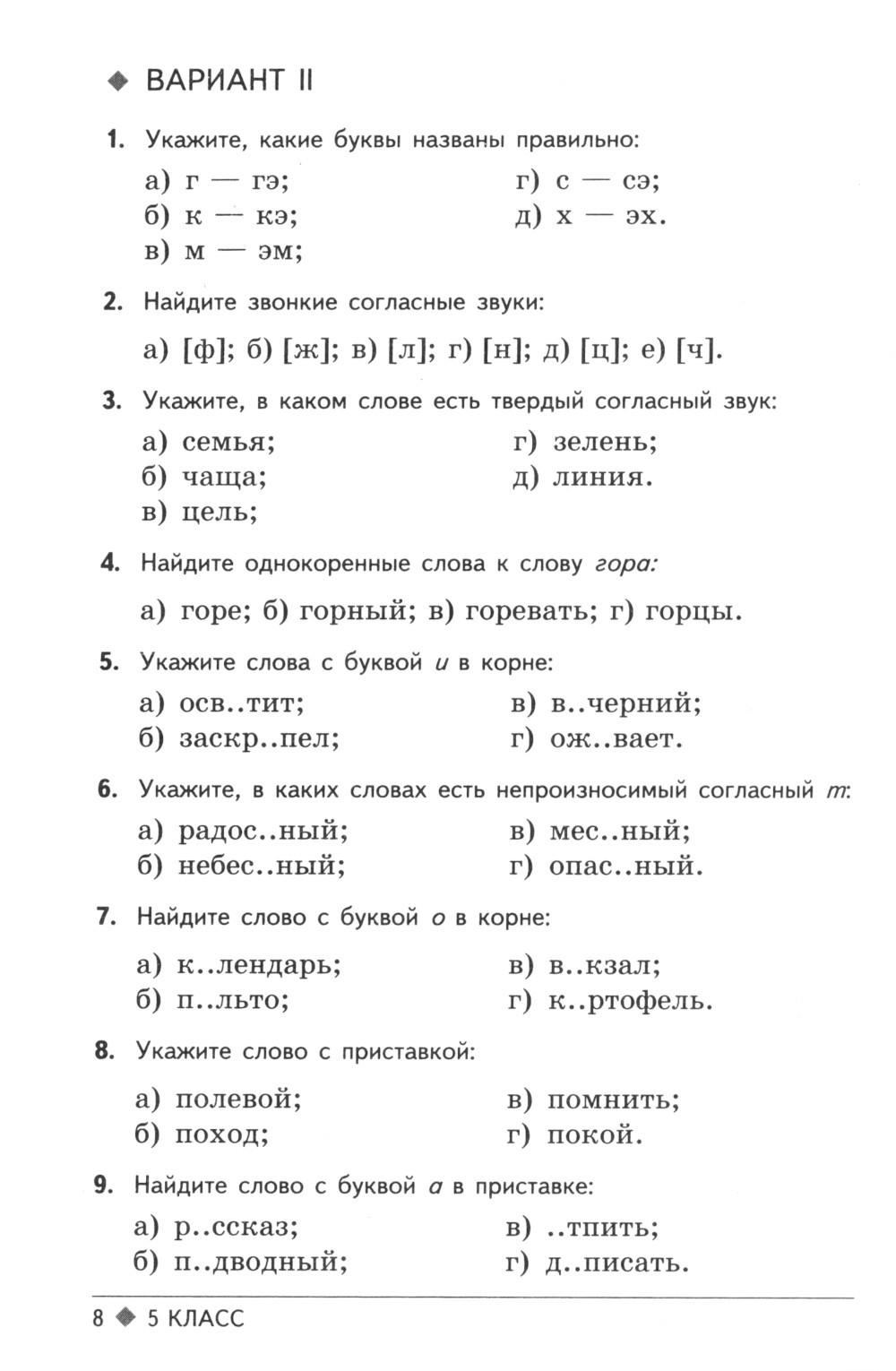 Аннотация: Тестовые задания для проверки знаний учащихся по русскому языку: 5 кл. 2-е изд., испр