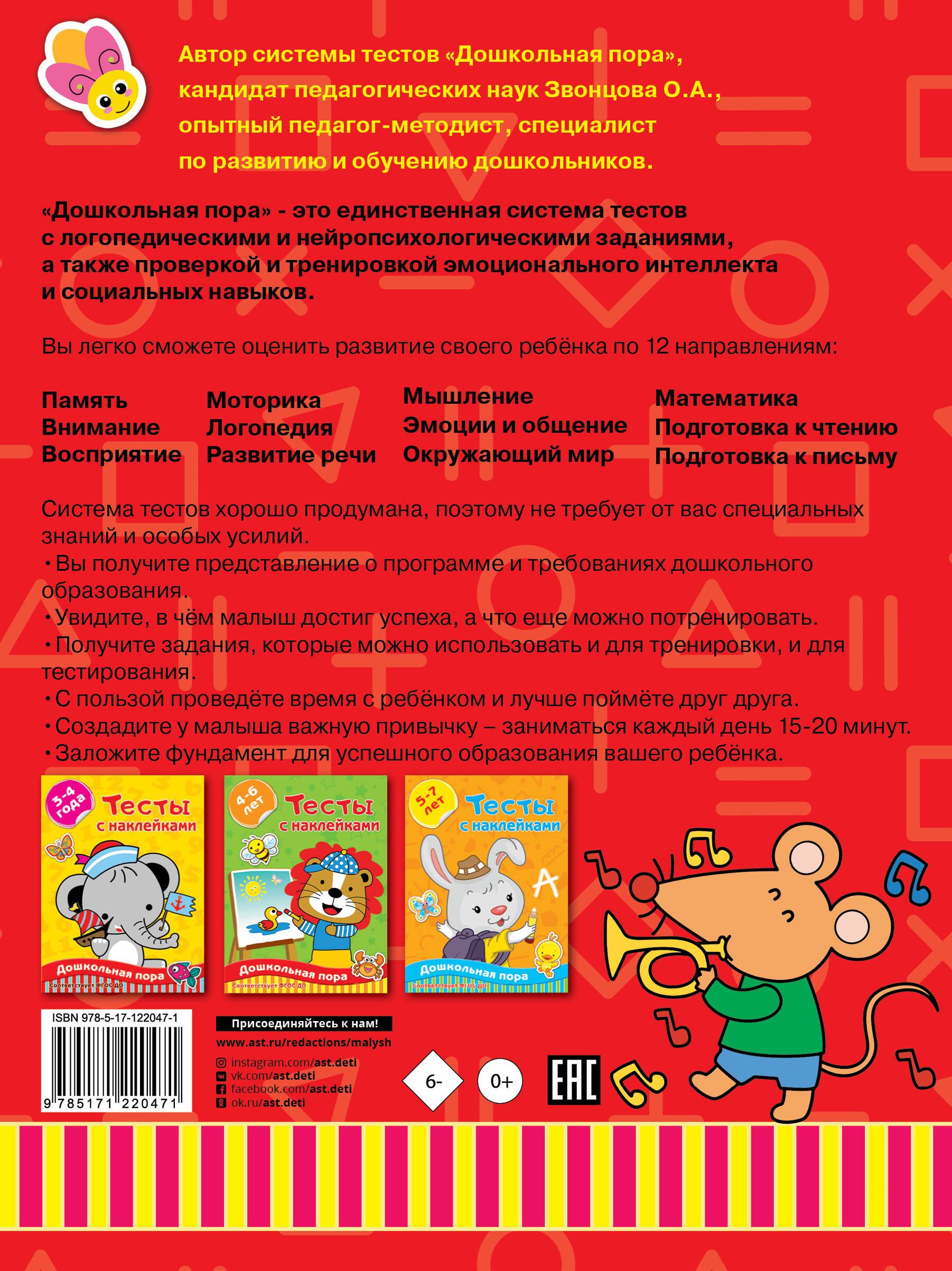 "Дошкольная пора" - система тестов, по которой любой родитель может проверить, что его ребёнку хорошо удаётся, а над чем ещё можно поработать. Автор книг-тестов - кандидат педагогических наук Звонцова О.А., опытный педагог и специалист по развивающему обучению. В этой системе проверки знаний, увлекательные вопросы и творческие задания объединены с логопедическими и нейропсихологическими упражнениями, а также проверкой и тренировкой эмоционального интеллекта и социальных навыков. Наклейки увлекают и мотивируют ребёнка к занятиям. В конце книги есть специальный сертификат, который можно подписать и вручить ребёнку, как официальную награду за хорошо проделанную работу. Для дошкольного возраста.| Издательство | ИЗДАТЕЛЬСТВО "АСТ" |