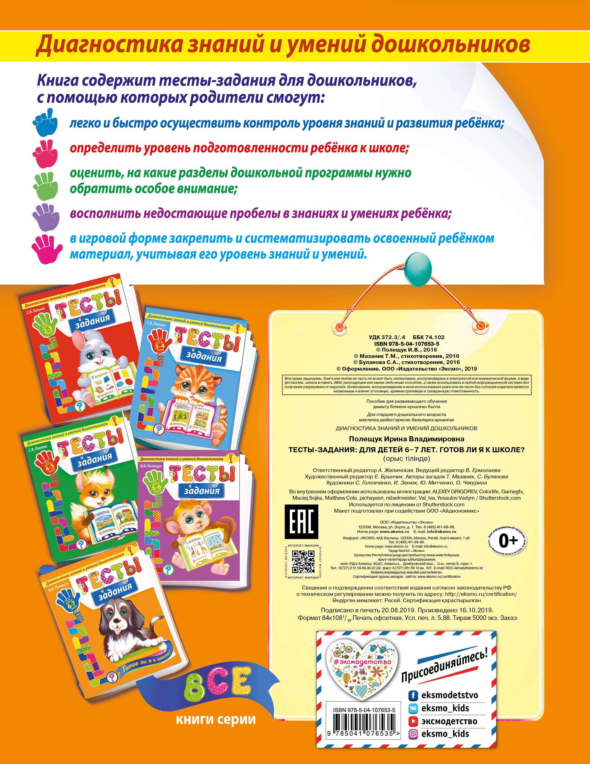 Аннотация: Тесты-задания: для детей 6-7 лет. Готов ли я к школе?_