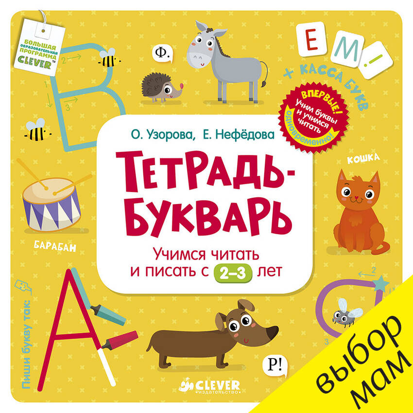 Никаких сложных уроков и скучных занятий! Только игра! Новое издание тетрадки-букваря сделано по самой эффективной методике обучения чтению и письму, разработанной известными педагогами Ольгой Узоровой и Еленой Нефедовой. А для них главное - увлечь детей занятием. В этой книге вы найдете разрезную кассу букв, с помощью которой ребенку будет легко запомнить буквы, научиться читать и писать мини-предложения и даже выучить знаки препинания. Как только ваш ребенок научился произносить первые слова и предложения и потянулся к книге, можете начинать занятия с букварем. Ваш ребенок запомнит буквы и начнет читать уже в 2-3 года! Если малышу 4 года или 5 лет, а он еще не читает, букварь поможет и ему. В книге вы найдете подробную пошаговую инструкцию для родителей и поймете, как заниматься по тетради, чтобы достичь максимального результата. Игровая подача информации и яркие картинки-примеры помогут вам заниматься с детьми и превратят обучение чтению и письму в увлекательную игру.| Издательство | Клевер-Медиа-Групп ООО |