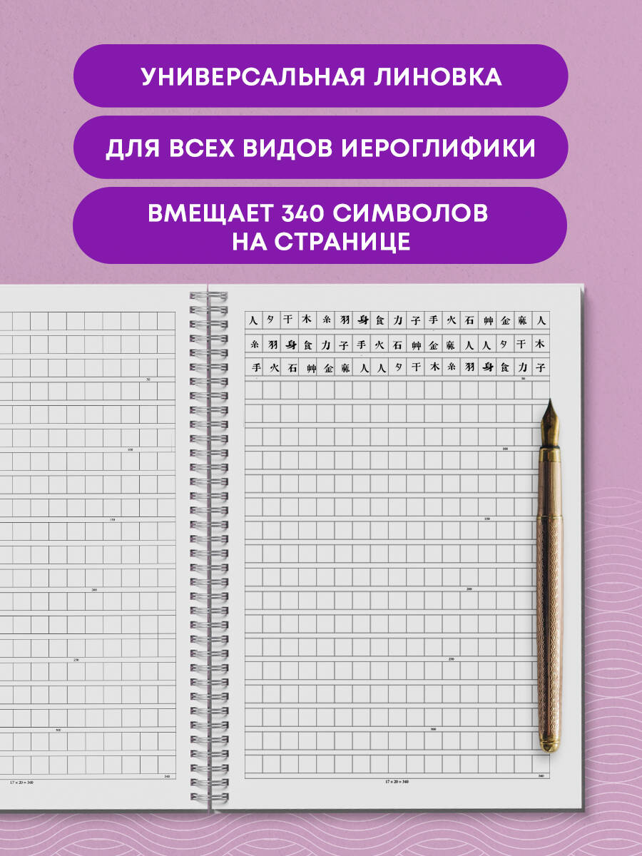 Тетрадь для иероглифов включает 60 страниц белой и плотной бумаги с разлинованными клетками 9х9 мм. Издание станет помощником в изучении восточных языков как для начинающих, так и для тех, кто совершенствует свои навыки каллиграфии. Универсальный формат подойдет для написания китайских, корейских и японских иероглифов.