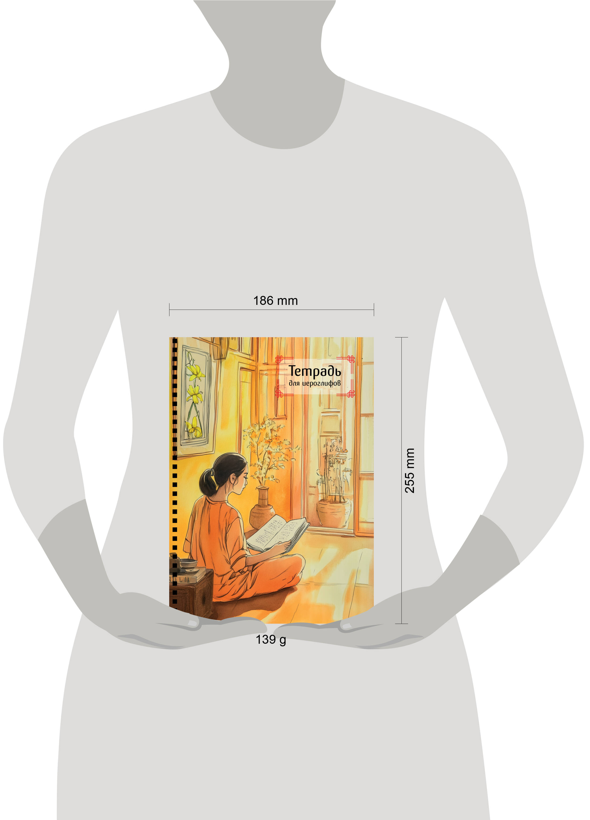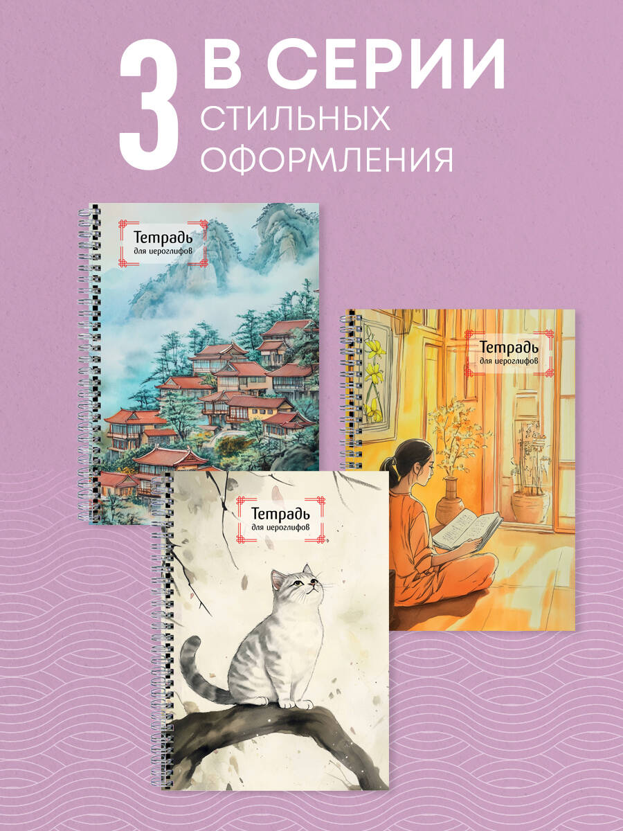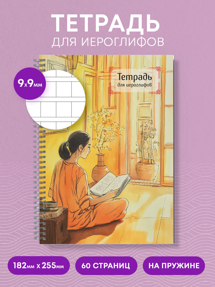 Аннотация: Тетрадь для иероглифов на пружине (Девушка и книга)