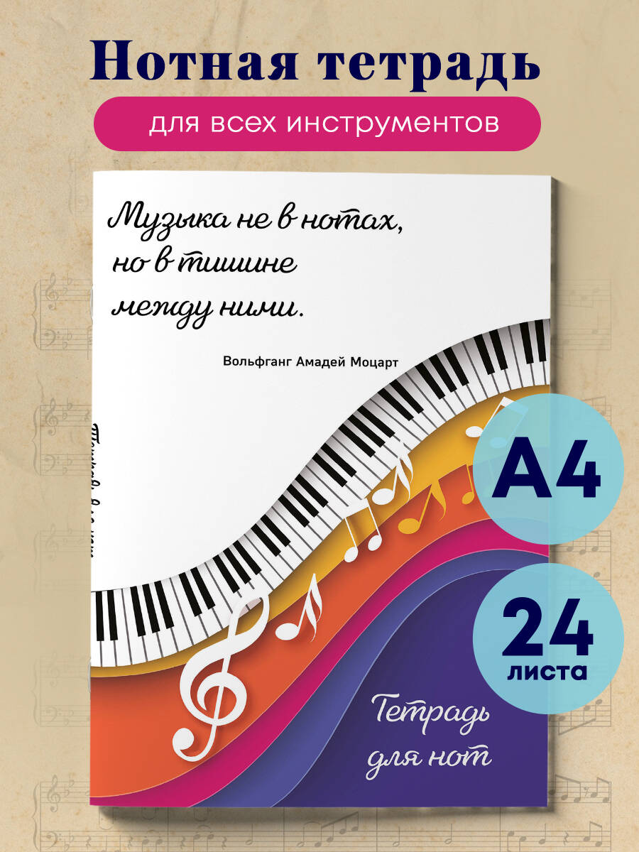 Эта тетрадь для нот станет помощником вашего ребенка в обучении и поможет быстрее освоить нотную грамоту, чтобы перейти к практике. Удобный формат, плотная белая бумага и дополнительные материалы на обороте обложки сделают процесс познания более продуктивным. А яркий дизайн и стильный блок с аккуратными иллюстрациями на полях делают эту тетрадь уникальной. Помогите своему ребенку проявить свою индивидуальность. Выбирайте лучшее! Технические параметры: Удобный формат А4. 48 страниц на офсетной бумаге. Стильный блок в с иллюстрациями и цитатами.| Издательство | ООО "Издательство "Эксмо" |